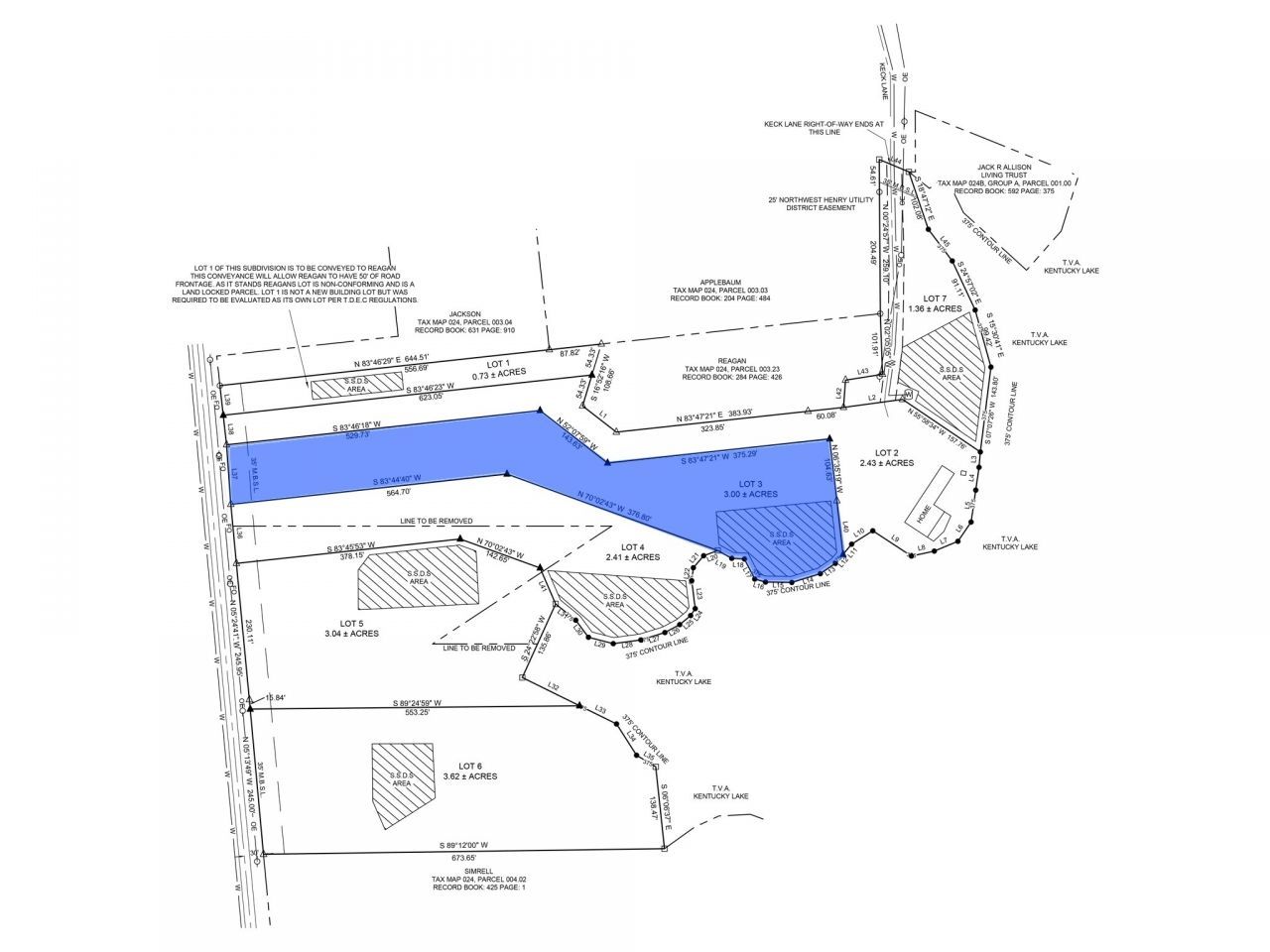 Lot 3 consists of approximately 3.00+ acres with road frontage along Swan Bay Road in the Kentucky Lake area. This parcel offers a predominantly level homesite with a gentle slope, creating a cost-efficient and flexible build opportunity.Positioned to capture lake views, the property also offers access to the gulley leading toward Kentucky Lake, adding both visual appeal and recreational value. The natural grade supports slab, crawl space, or walkout construction while promoting proper drainage with minimal grading requirements.Approved for a 4-bedroom residence with a conventional septic system per recorded plat and TDEC approval. Utilities available at the road.Ideal for custom home construction, speculative build, or long-term hold in a limited lake-area inventory market where view-oriented parcels are increasingly scarce.