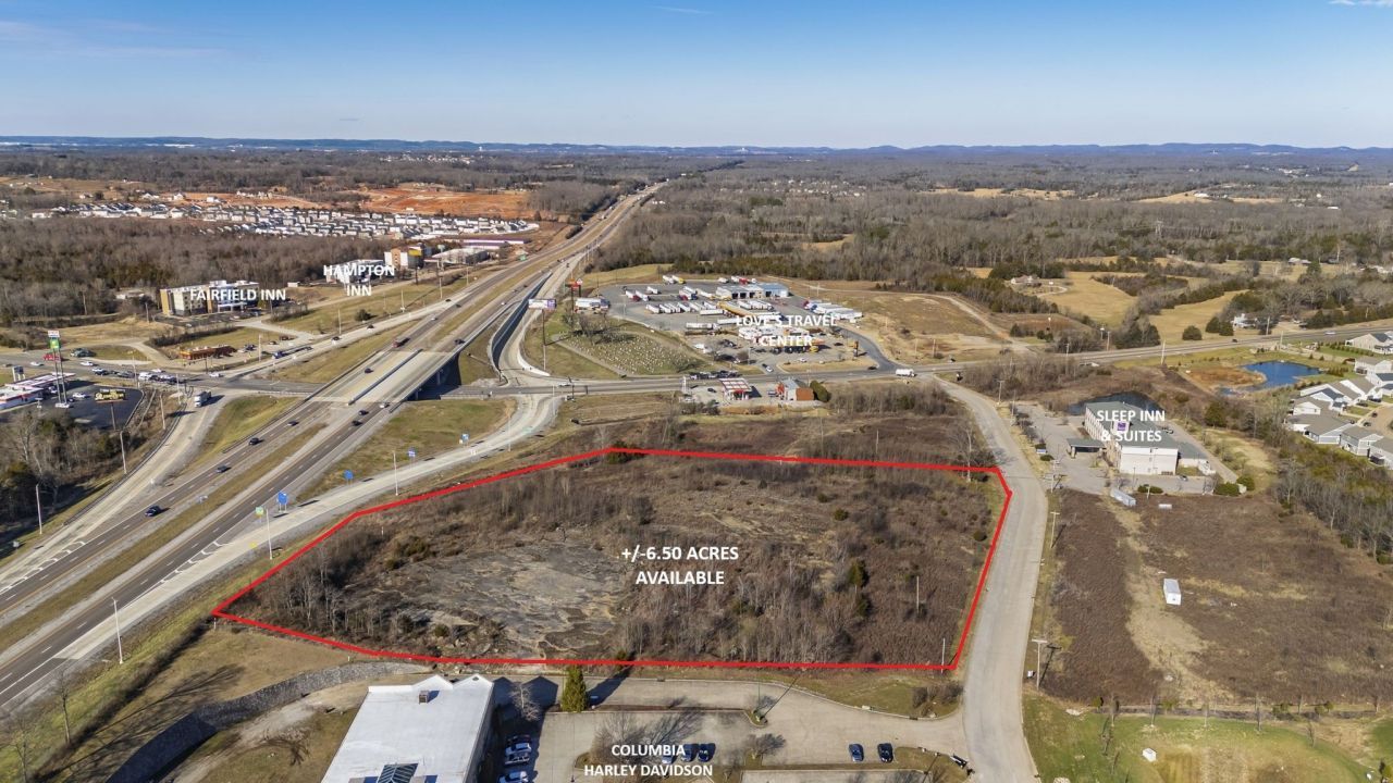 6.50 Acre Commercial Site located on the west side of Harley Davidson Blvd., just off the I-65/Bear Creek Pike Interchange (Exit 46). Site offers excellent interstate visibility and approx. 575 feet along the west side of Harley Davidson Boulevard; +/-585 feet along the east side of Interstate 65. Site adjoins Columbia Harley Davidson dealership and all utilities are available. Site is zoned CD-4C (City of Columbia) and ready for development! Overall topography is gently rolling with elevations ranging from +/-630 feet to +/-660 feet across the site.New Residential Development synergy in close proximity gaining momentum. CATCH THE NEXT WAVE! Historically, commercial development patterns have followed the I-65 corridor south from Nashville, i.e. Maryland Farms (Brentwood), Cool Springs, Goose Creek (Franklin), and June Lake (Spring Hill). The I-65/Bear Creek Pike Interchange (Exit 46) in Columbia is evolving and capturing attention as both commercial and residential development continue to expand. Bear Creek Pike (Hwy 99) serves as the primary commuter route from Columbia, TN to I-65. Existing commercial development includes Columbia Harley Davidson, Love's Travel Center, Sleep Inn & Suites, Fairfield Inn, Hampton Inn, Holiday Inn Express, Cracker Barrel, McDonalds, Waffle House, and Fast Stop Market. New Residential development in close proximity includes Bear Creek Overlook, Bear Creek Glen, Quail Run Meadows, and Bear Springs.