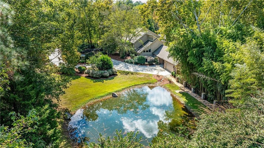 Discover this truly one-of-a-kind private, gated compound set on over 5 acres of meticulously landscaped grounds, offering three separate properties - ideal for multi-generational living. The nearly 9,000 sqft primary home offers 6 bedrooms, 4 full baths, 2 half baths, full terrace with dedicated theater room, game room, and bar for elevated living. Thoughtfully designed with two generous living areas with 2 wood burning fireplaces, a formal dining room, and a well-appointed kitchen complete with double ovens, and built-in commercial refrigerator/freezer - the home is perfect for everyday living and effortless entertaining. Rustic wood beams and stone accents infuse the home with authentic ranch-style character, and brick flooring leads to a charming wine cellar, adding to the unique appeal. In addition to the 5 bedrooms in the main home, an additional private guest suite with it's own entrance is located above the 2 car attached garage, making it ideal for teen suite, au pair living, or live-in housekeeper. A stunning 3-level deck overlooking the pool and serene landscape graces the rear of the primary home with covered porch views from the living room, primary suite and terrace level. In the backyard, the oversized pebble-finish pool and spa await, featuring tanning ledge and natural rock accents creating a resort-style setting complete with firepit. The freeform pool echoes nature and leads to the pool house with kitchenette with stone island, living room and full bath - making backyard hosting seamless. The second residence is a true stepless ranch and spans over 1300 sqft and offers 2 bedrooms and 2 baths, making it perfect for multi-generational living. With a full kitchen, living, and laundry, it is truly a second full home on the property. Attached to the second residence is a gym, expansive carport and and heated/cooled 2-car garage for the car enthusiast or woodworker, with attached office space. The third building on property which encompasses 660 sqft with half bath is ideal for a quiet workspace, creative enclave, yoga retreat, or art studio. All three residences, along with the poolhouse, are thoughtfully connected and cohesive in style and design. Shared architectural elements to include the unique round windows and curated accents create a harmonious flow throughout the property, seamlessly blending with the surrounding landscape. Approaching the primary home, a serene pond featuring a dock and pavilion offers a picturesque setting to relax. Stone and brick pathways wind gracefully throughout the property, leading to a private lighted tennis/pickleball/basketball court, expansive grassy lawns and peaceful patios nestled beneath canopies of mature trees inviting exploration at every turn. With no HOA restrictions, this estate offers the freedom to make it your own - bring your RV, boat, or add chickens to the existing chicken coups - all while enjoying the privacy and space of your own 5-acre retreat. The grassy lawn is great for football, baseball, soccer, golf, and even offers enough space for helicopter landings! Set in Peachtree City GA, a mere 15 miles from Atlanta's Hartsfield-Jackson International Airport, you will feel like you are a world away from everything, while still near first-class entertainment, retail,dining and transportation. Peachtree City offers 100+ miles of golf cart paths, and the estate is zoned for the highly-rated McIntosh High School district.