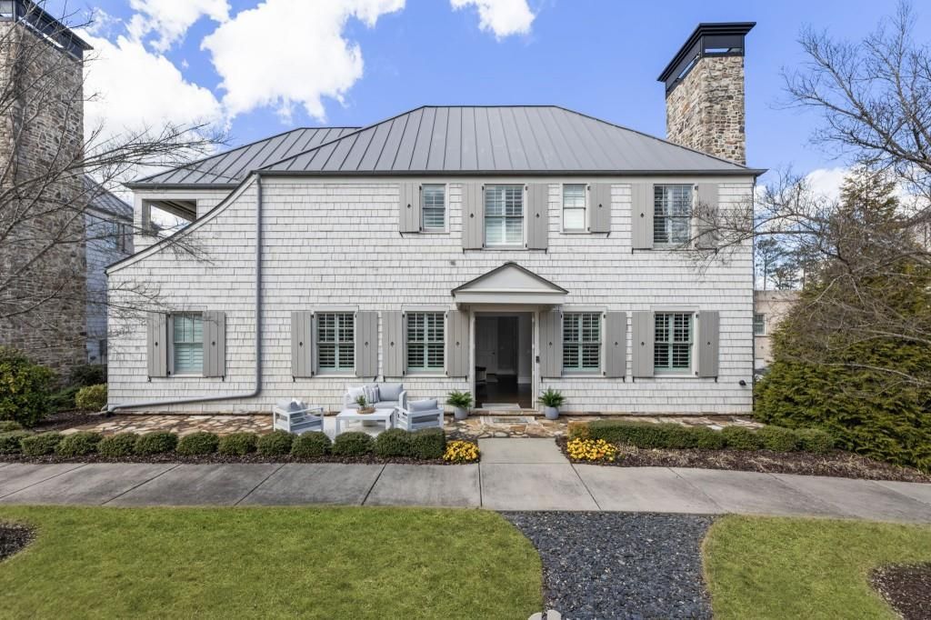 This home defines luxury and low-maintenance in the heart of Avalon, North Atlanta's vibrant and dynamic live-work-play destination. Nestled within a boutique neighborhood in a prime Alpharetta location, this detached garden cottage offers the perfect blend of privacy, designer touches, and a true lock-and-leave lifestyle. The bright and airy interior showcases an open layout, high ceilings, and hardwood flooring throughout the living space. The spacious main level is thoughtfully designed to meet the needs of modern everyday living, anchored by a stunning designer kitchen featuring a statement range hood, marble countertops, Thermador and SubZero appliances, and a large eat-in island. The kitchen flows effortlessly into the dining area and inviting fireside living room, and a built-in desk just off the kitchen maximizes functional use of the space, perfect for working from home or managing daily tasks. Upstairs, the primary suite has a generous ensuite bath and access to a covered rooftop patio. Outfitted with electronic shades and speakers, this serene outdoor retreat can be enjoyed year-round. A secondary bedroom with its own ensuite bath offers comfort and privacy for guests or family. Perfectly positioned within Avalon just steps from shopping, dining, and entertainment, residents also enjoy close proximity to the vibrant energy of downtown Alpharetta, the scenic Alpha Loop trail system, Whole Foods Market, and convenient access to GA-400. Neighborhood amenities include community green space and a fire pit for gathering, pool and dog park. From local restaurants and retail to beautifully maintained green space and a year-round roster of events and entertainment, everything you need is within easy reach. Contemporary yet timeless, this exceptional detached home delivers designer touches, effortless elegance, and a low-maintenance lifestyle tailored for today's discerning homeowner.