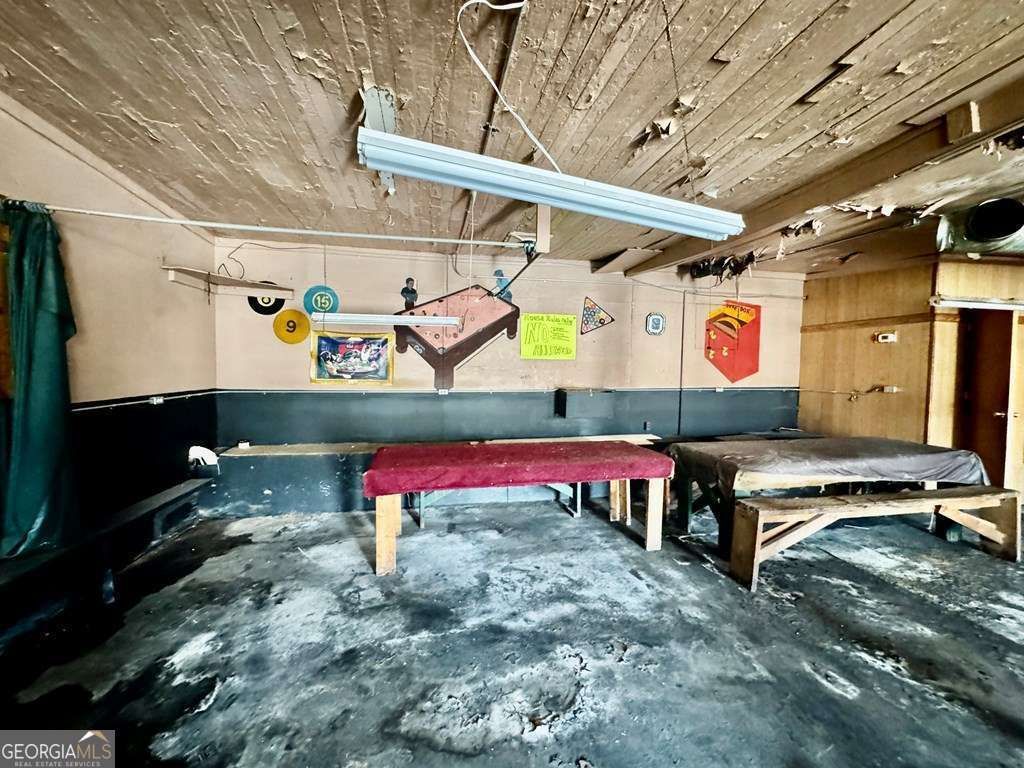 Commercial Building in Downtown Montezuma formerly operated as a Pool Hall. Built in 1955, 1088 heated square feet of space according to the public tax assessor site & lot size .02. Wall height is 12 ft. with one open room having concrete floors & one bathroom. With some TLC, turn this space to suit your own preference. Contact City of Montezuma for all questions regarding permitted use of property. To be SOLD AS IS without an active utility connection for power or water per seller.