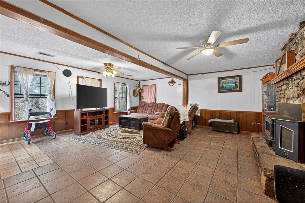Experience the best of country living in Mountainburg! This comfortable 3-bedroom, 2-bath home on just under an acre boasts a native stone exterior topped with a sleek, metal roof. Kick back and relax in the spacious living area and functional, eat-in kitchen with storage galore. This rural charmer also features a large 30x60 (Approx.) shop, complete with its own electric meter and woodburning stove. Tucked away in the heart of the Boston Mountains, Mountainburg is roughly 30 minutes from Fayetteville, 30 minutes from Ft. Smith, 10 minutes from Alma and 10 minutes from Lake Ft. Smith. What better place to enjoy quiet, peaceful country living than in the very heart of the Ozarks!