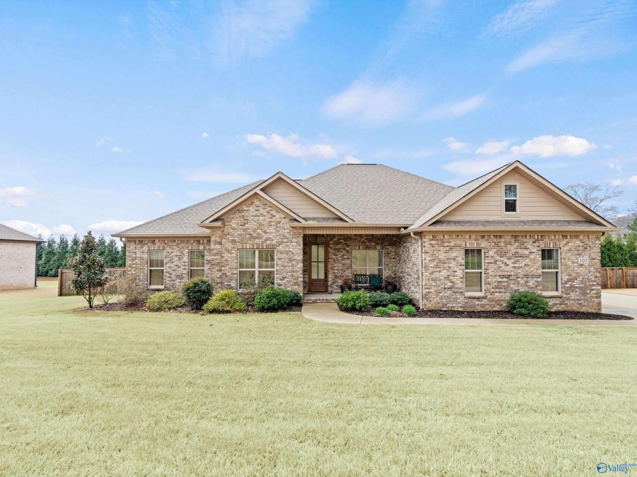 Full brick home located in the desired Sycamore Cove neighborhood in Guntersville City limits. 4 bedrooms, 2-1/2 baths, vaulted great room w/paddle wheel ceiling fan, gas log fireplace, granite countertops, tiled shower & soaking tub in primary bath, covered porches w/pine plank ceilings, 2 car garage, gas water heater, fenced back yard, concrete driveway, curb & gutter w/street lights throughout the neighborhood and much more. All located near a TVA public boat launch to access Lake Guntersville & only about a 45-minute drive to South Huntsville.