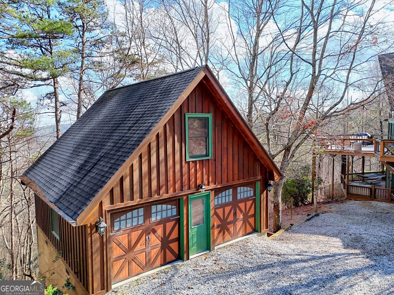Three bedroom 3 1/2 bath retreat on beautiful wooded lot with serene Lake Rabun views. Custom 3400 square foot log home offers the perfect blend of comfort, space and natural beauty designed for everyday living and memorable entertaining.Thoughtfully designed with room for family and guests alike. Many custom features. Inviting great room filled with natural light seamlessly flowing into well appointed kitchen, ideal for gathering and entertaining. Primary suite on main level with an en-suite bath featuring heated floors. Laundry room and walk-in pantry on main floor. Downstairs the expensive lower level boasts a large family and game room perfect for movie nights, hobbies or hosting friends. 2 bedrooms and 1 bath downstairs. Abundant storage space to keep everything organized and out of sight. Upper level features a charming sleeping loft which overlooks the property and showcases a spectacular Lake Rabun view and ideal spot for a home office, reading nook or quiet retreat. Outdoor living is just as impressive. A huge Trecks deck provides low-maintenance enjoyment, and ample space for entertaining while the screen porch off of the master bedroom offers a tranquil place to unwind. The fenced yard is perfect for pets and helps protect your raised bed gardens from wildlife. Relax year-round in the hot tub and enjoy peace of mind with a whole-house generator, ensuring comfort and security in any season. Additional highlights include a 2-car separate garage with heated storage space both above and below. This home combines scenic, beauty, modern comfort, and versatile living space in one remarkable property. Be sure to notice the builder's custom signature of a tree in the living room.