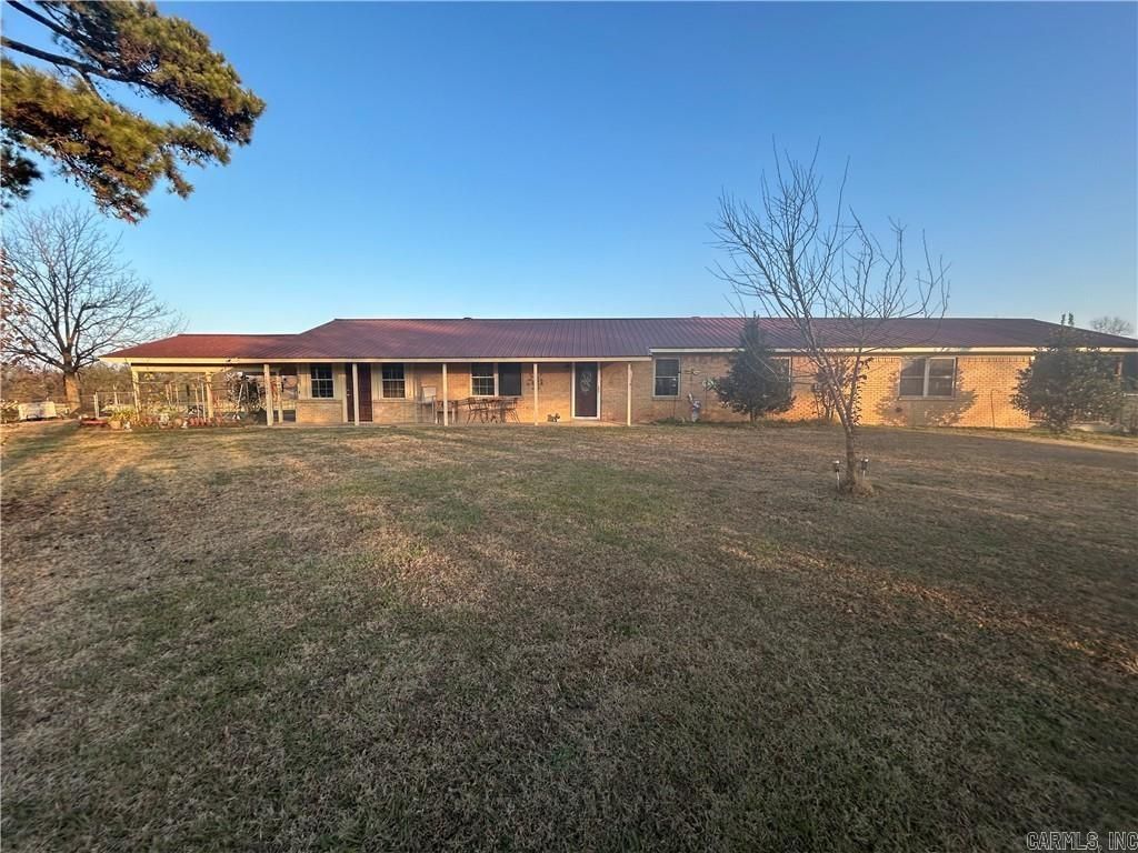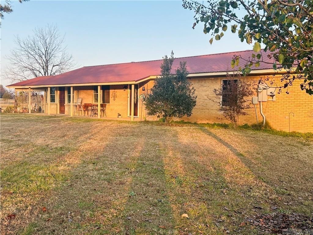 Welcome to your private country retreat???just one mile from the main road. This property offers scenic views and a calm setting. Lovingly maintained, this home is exceptionally clean and thoughtfully updated throughout. The ranch-style brick home features a metal roof, a wood-burning fireplace, two remodeled bathrooms, and a large master suite with a secure safe room and walk-in closet. Inside, you???ll find tile and Pergo wood laminate flooring and a bonus room connected to the laundry room. Enjoy morning coffee or quiet evenings on the back deck. A standout feature is the 4-bay steel shop/garage offering approximately 5,000 square feet with electric overhead doors, a man cave with half bath, wood stove, and air conditioning, plus an attached 2,000-square-foot barn. Land includes fenced pasture and mature fruit trees including peach, pear, apple, pecan, blueberry, blackberry, pomegranate, and grape. With no restrictions, this move-in-ready property offers space, flexibility, and a true sense of home.