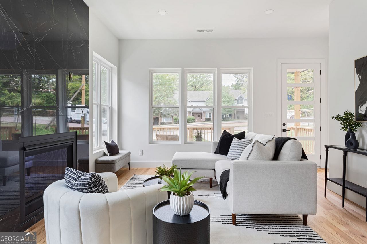 1044 Martin Street SE offers modern design, exceptional natural light, and a layout that lives beautifully like a single family home. Just half a block from the Atlanta BeltLine Southside Trail the property sits between the vibrant energy of Summerhill and the established charm of Grant Park, with easy access to neighborhood restaurants, coffee shops, parks, and farmers markets. While technically an attached residence, the home shares no walls beyond the carport, creating a level of privacy and quiet rarely found in attached construction. The thoughtful three level layout provides flexibility for both everyday living and entertaining. The light filled main level features hardwood floors, a gas fireplace, and a chef inspired kitchen with custom cabinetry, quartz countertops, and a generous step in pantry. The open living and dining spaces connect seamlessly and are designed for comfortable daily living as well as hosting. Upstairs, the primary suite offers a spacious walk in closet and an elevated bath with dual vanities. Additional bedrooms provide flexibility for guests, family, or workspace. The top level creates a standout living experience with a versatile flex space and accordion glass doors opening to a private rooftop terrace. This level can function as a second living room, home office, guest retreat, or entertainment space. With no HOA and no rental restrictions, the property also offers uncommon flexibility for homeowners or investors. Positioned along the rapidly evolving Southside BeltLine corridor and with convenient access to downtown Atlanta, major sporting venues, and Hartsfield Jackson International Airport. A rare opportunity to own thoughtfully designed new construction in one of Atlanta's most exciting and growing intown neighborhoods.