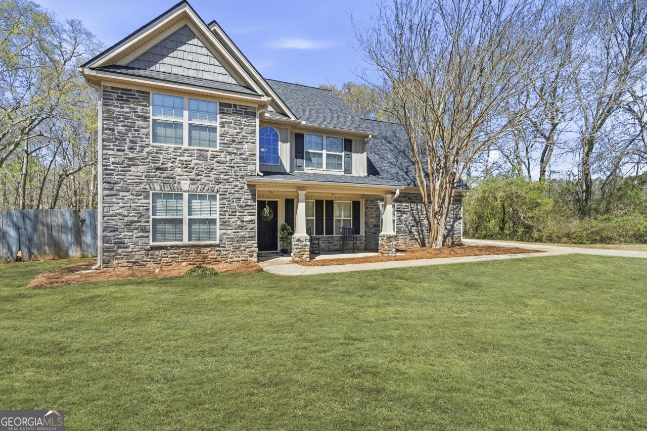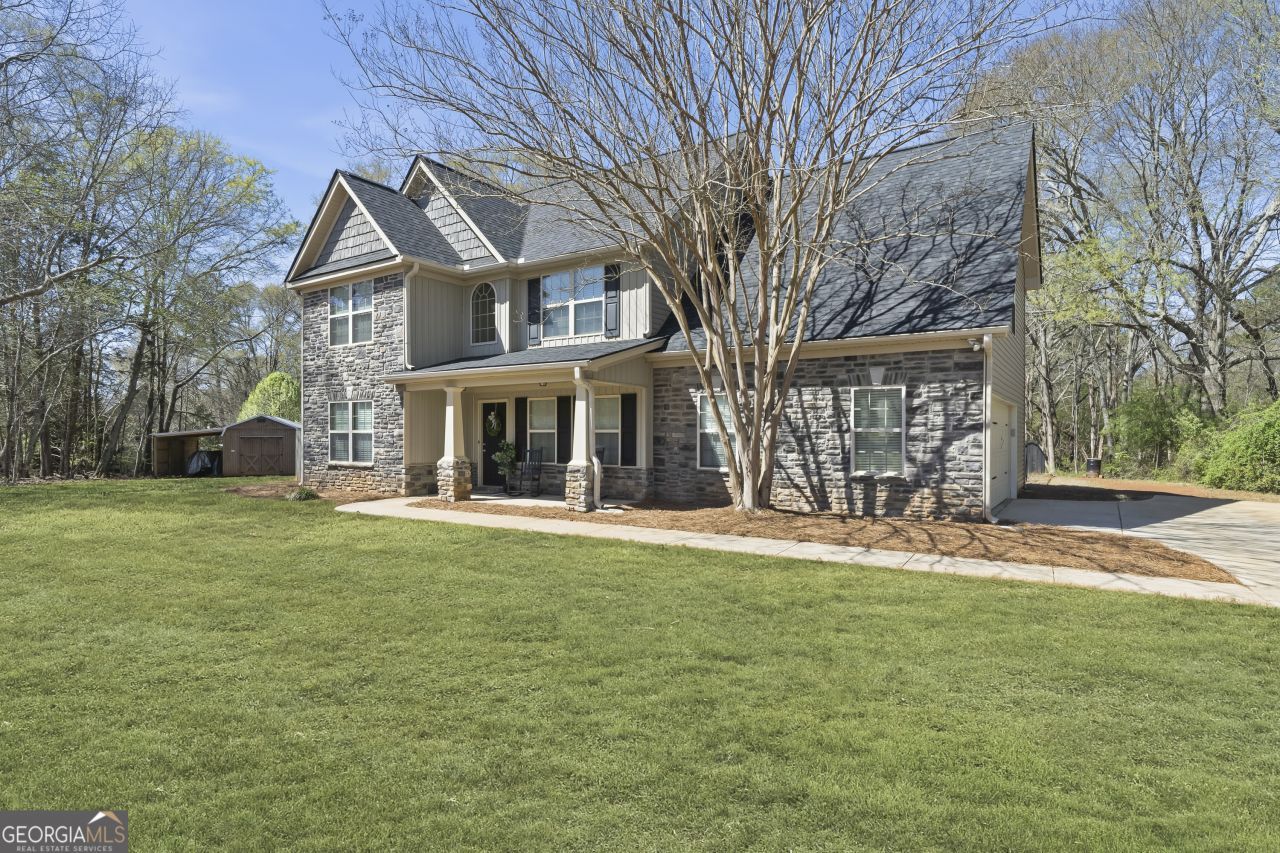 Handsome two-story home situated on 1.5 acres in Morgan County, offering 4 bedrooms, 2.5 bathrooms in a quiet neighborhood with only 13 homesites. A lovely and welcoming rocking chair front porch sets the tone for comfortable southern living. Step inside to a two story foyer that opens to a spacious main level featuring a separate formal dining room, an eat in kitchen and a family room with new LVP flooring and a wood burning fireplace. The versatile front room provides the perfect space for a home office, formal living area or flex space to fit your lifestyle. Note this home has a NEW ROOF and all new flooring throughout. Upstairs offers a functional layout with 4 nicely sized bedrooms and the laundry area. The owner's suite features a tray ceiling, double vanities and a separate tub and shower. The oversized fourth bedroom offers additional flexibility and could easily serve as a bonus room, play room or upstairs den. New 12x24 storage building (wired for electricity) with a 30 x 22 lean-to providing excellent space for storing a boat, golf cart and other recreational equipment. This home offers the perfect balance of privacy, space and convenience all just minutes from Madison and Rutledge in beautiful Morgan County.