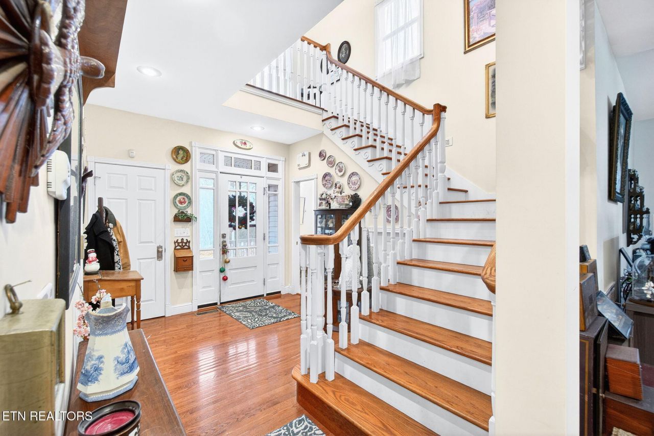 Approx 4000 sq ft of craftsmanship in this exceptional custom-built home, ideally situated just 90 miles from Nashville and 80 miles from Knoxville-perfect for commuters seeking both convenience and tranquility. Step onto the inviting wrap-around porch, where every detail invites relaxation and connection with nature. Inside, you'll find four spacious bedrooms plus a versatile bonus room, offering ample space for family and guests. The heart of the home is a large eat-in kitchen adorned with solid cherry cabinets, seamlessly blending style and functionality. Bask in natural light year-round in the expansive sunroom, perfect for morning coffee or evening gatherings. With 9-foot ceilings, elegantly beveled windows, wireless intercom and security system, this home combines luxury with peace of mind. Set on over 5 acres, this property is not just a house; it's a lifestyle waiting to be embraced. Come experience the unique charm this home has to offer-your family's sanctuary awaits.
