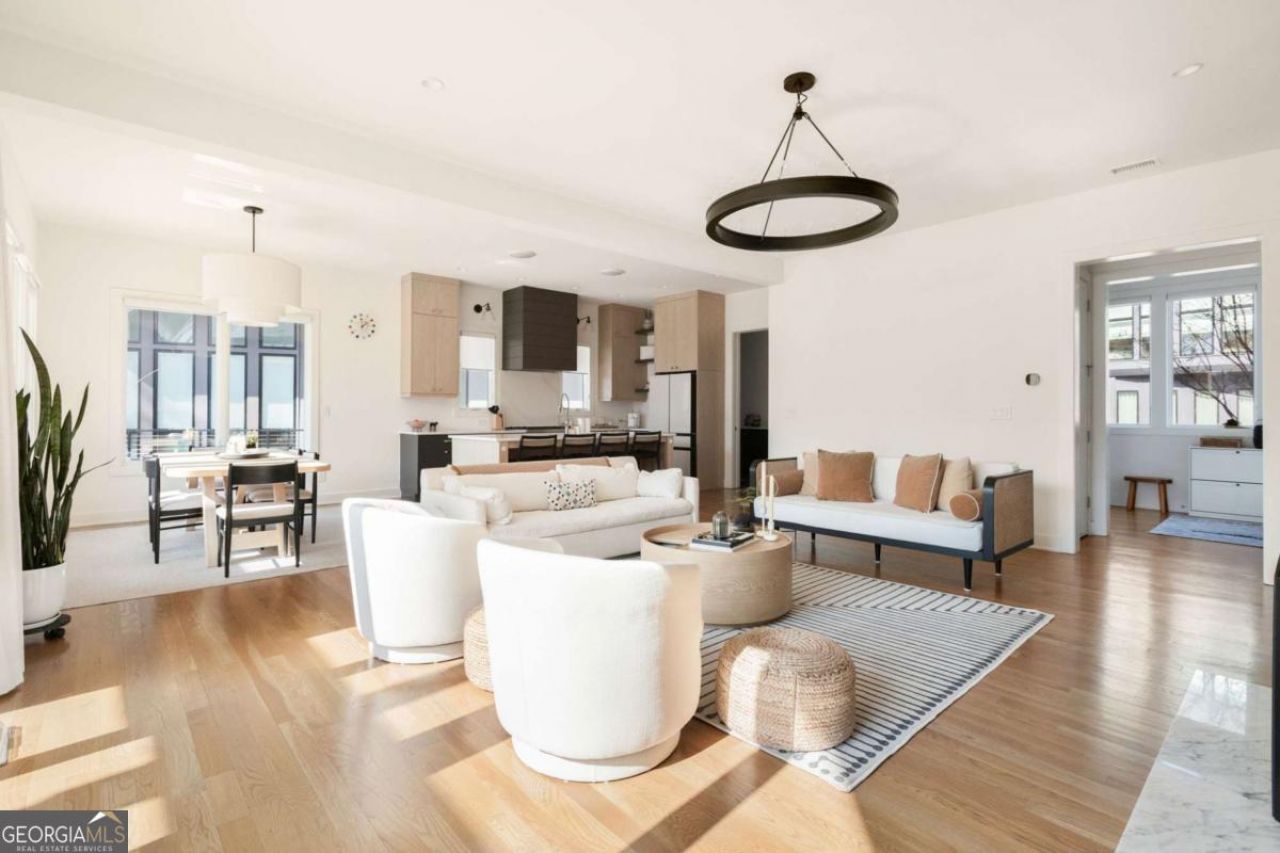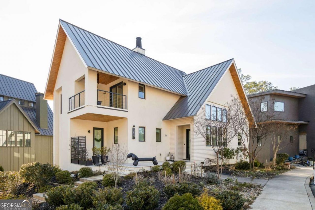 Nestled in the Mado Hamlet of Serenbe, this thoughtfully designed home offers four bedrooms and four and a half bathrooms with an open living and dining floor plan ideal for everyday living and entertaining. The primary suite is conveniently located on the main level, opening to an expansive vaulted back porch overlooking treetop views. Upstairs, two guest bedrooms are joined by a flexible playroom and a loft with access to a private outdoor balcony. The terrace level adds a finished bedroom and bath, plus a garage with additional storage, completing this inviting retreat surrounded by nature. This home is also equipped with solar power panelling on the roof, offering energy effeciency. Centrally located, the home is just steps from Serenbe's wellness amenities, including the spa, gym, restaurants, cafes, and over 20 miles of soft-surfaced nature trails through protected forest views.