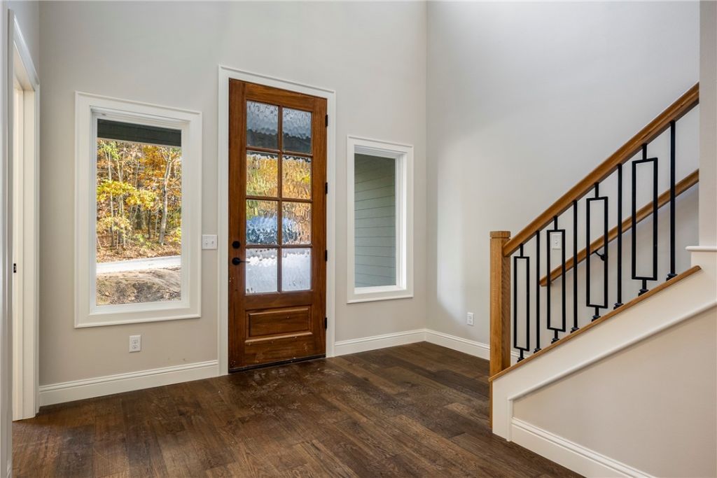 Stunning new-construction home on a large .40 lot, with 2,066 sq ft on two levels. Real hardwood floors with matte-finish throughout home! Open floor plan, with stylish finishes. The oversized kitchen features white quartz counters, black composite farm sink with commercial-style matte black faucet, GE stainless appliances including refrigerator, and a huge walk-in pantry. Enjoy wooded backyard views from the large picture window. Home offers 4 bedrooms plus an office (septic rated for 3 bedrooms). Designer tile includes ocean-blue scallop shower surround and black vertical subway tile in the primary bath. Arched mirrors, wood accent walls, and custom lighting add warmth. Relax on the spacious deck and enjoy your privacy! This home is ready for occupancy!