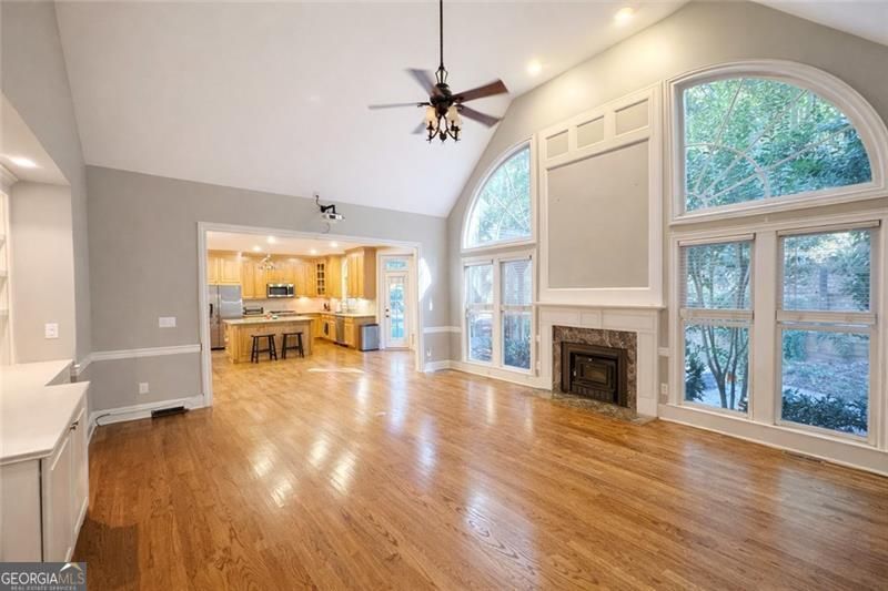 Stately 6-bedroom, 5-bath executive home built by award-winning builder John Wieland Homes - a name synonymous with luxury, premium materials, and quality craftsmanship. Situated on a desirable north-facing homesite in the prestigious Woodmont Golf & Country Club, this 3-sided brick residence offers main-level guest/bedroom with full bath, side-entry garage, and sophisticated design throughout. The oversized kitchen features granite countertops, double ovens, gas cooktop and center island that opens to the vaulted-ceiling family room anchored by a wood-burning fireplace - all hallmarks of John Wieland's signature attention to finish and flow. The fully finished terrace level includes a media room, game room, deluxe wet-bar/kitchenette, full bath and bedroom - plus a large unfinished area ready for home gym, studio or storage. Outdoor living takes center stage with expansive decking, private cabana, built-in hot tub and fire-pit, overlooking a fully fenced backyard. Coupled with the rocking-chair front porch, the home blends elegance with lifestyle. Located in one of Cherokee County's most sought-after school districts and within a vibrant club-community offering championship golf, lighted tennis courts, resort-style pool with water slide and country-club amenities. More than a home - it's a John Wieland home crafted for the luxury lifestyle you deserve.