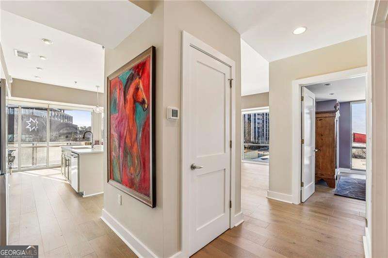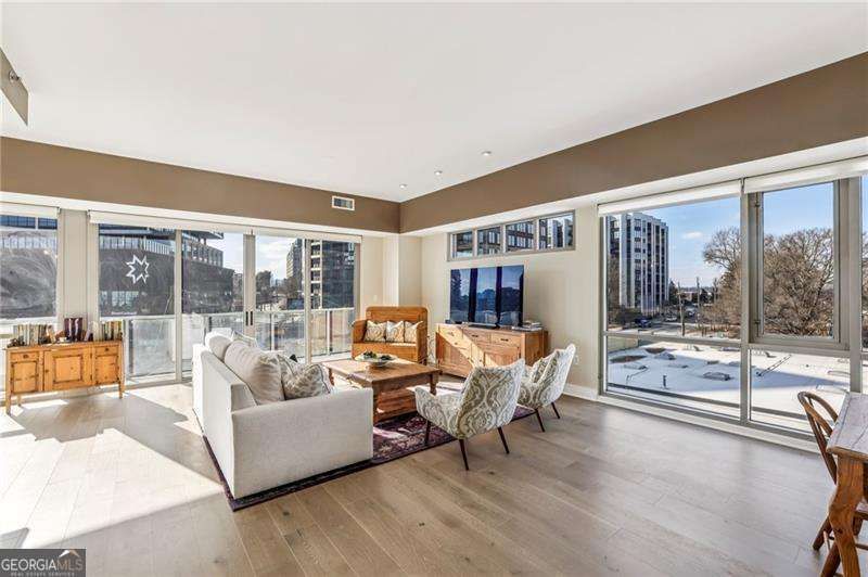 Welcome to a corner residence at White Provision where natural light, thoughtful upgrades, and everyday convenience come together. Wrapped in windows, this spacious two bedroom, two bathroom home is filled with sunlight throughout the day, enhancing the open layout and creating an open, airy feel. New LVP flooring installed in 2019 grounds the main living area and bedrooms. A full suite of brand new appliances installed in 2025 and a 2020 HVAC replacement reflect the care and investment put into the home. Both bathrooms were completely renovated in 2025 with clean, modern finishes, making this home truly move in ready. A large private balcony extends the living space outdoors and offers the perfect spot for morning coffee or winding down in the evening in the heart of West Midtown. Two deeded parking spaces are located on the same level as the unit, offering convenient access without the need to change floors. The home also includes access to a dedicated storage room on the fifth floor, providing substantial additional space for seasonal items, luggage, or recreational gear. In condo living, having both same level parking and extra storage is a significant advantage. White Provision is a secure building with full time front desk reception, a fitness center, pool, and water included in the HOA dues. Just outside your door are some of Atlanta's most celebrated dining and retail destinations including Marcel, The Optimist, Yalda, Miller Union, O-Ku, Puttshack, Cooks & Soldiers and The Interlock, along with boutiques and specialty shops throughout West Midtown. Enjoy easy access to I-75, I-85, Midtown, Atlantic Station, and Georgia Tech.