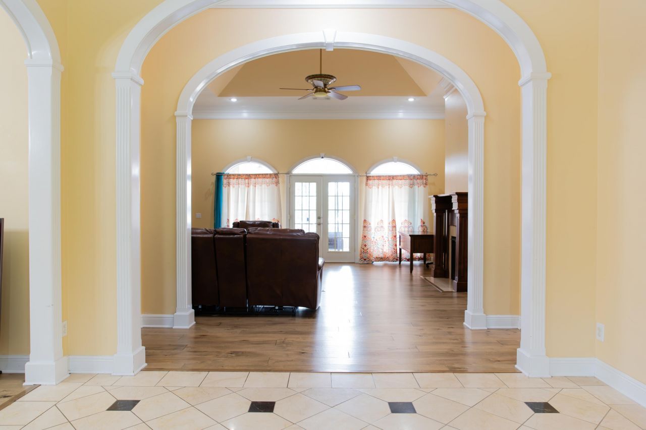 Discover lakeside living on 2.3 acres! This 4 bed, 3.5 bath home offers elegant interior featuring arched entryways, tray ceilings, and a gourmet kitchen with stone counters and a center island. The spacious living area centers on a classic fireplace with both lake and pool views. A versatile bonus room off of the dining room provides the perfect space for a home office or library with built-ins. The outdoor oasis is a true retreat, boasting a fenced in-ground pool, courtyard with fountain, and expansive lawn leading to the serene lakefront. This property combines classic architectural charm with modern comfort in a private, scenic setting.