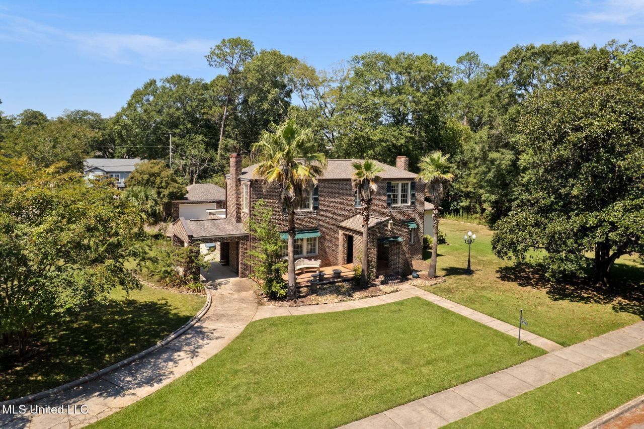 The O.C. Grigsby House is a rare 1925 treasure in Hattiesburg's Parkhaven Historic District! This two-story brick home sits proudly on a corner lot and is recognized as a contributing property within the neighborhood's historic designation. Its Spanish Eclectic influences shine through in the distinctive brickwork with raised mortar joints, arched details, and tile accents that give this home its timeless presence.Inside you will find gracious living spaces with original wood floors, tall ceilings, and textured plaster walls. The front entry opens to a wide staircase with elegant wood banisters and an inviting foyer framed by arched doorways. Just beyond, the formal dining room is filled with natural light from tall windows and highlighted by crown molding and period lighting.The main level offers multiple gathering spaces, including a living room with fireplace, a sun porch with brick walls and tile flooring, and a large brick-walled den perfect for entertaining. The kitchen holds a walk-in pantry and updated cabinetry alongside a gas range, while nearby you'll find extra storage areas and a covered side entry.Upstairs you will find the primary suite with a second fireplace, additional bedrooms with cedar-lined closets, and baths that reflect the character of the home with original tilework and fixtures. The wide landing at the top of the staircase showcases the craftsmanship of the 1920s and creates a spacious transition to the upper rooms.The exterior features a covered front porch with a heavy wood door and lantern light, a tiled patio, and a porte-cochere that provides covered entry into the home. The circular drive and large lawn with mature trees add to the setting of this historic property.The O.C. Grigsby House is more than a residence - it is a landmark of Hattiesburg history where vintage character meets everyday living. Schedule your private viewing today!
