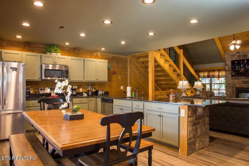 Location, Luxury, and Lifestyle! This extraordinary 4-bedroom cabin with indoor pool has it all, thoughtfully designed for entertainment and relaxation! Crafted of a fiber cement and stone construction, this one-of-a-kind residence features an amazing 3,512 SF layout within the amenity-rich Laurel Estates at The Glades. Step inside from the covered front porch to find warm wood floors and accents throughout the open layout, with soaring cathedral ceilings and a grand see-through fireplace anchoring the living room that is shared with the rear deck. This sophisticated floor plan invites gathering with a stunning dine-in kitchen featuring stainless steel appliances, granite counters, shaker-style cabinets, and stone-front breakfast bar. Head outside to take advantage of the therapeutic health benefits of the cabin's private sauna or settle comfortably in for the peaceful nature views while enjoying your favorite beverage. When it comes to R&R, the main level primary suite is an exceptional escape boasting mountain chic luxury with double sided fireplace shared with the spa-like soaking tub, while the ensuite bath is well equipped with double sinks and a walk-in shower. Ascending to the second floor, you will find that the game loft has everything you need for a good time including a pool table, air hockey, and arcade game. Two ensuite bedrooms crown the top floor, providing a serene destination where guests can kick back and unwind in style. Take the stairs down to the lower level to experience the crown jewel of this luxury cabin: an indoor heated saltwater pool and private theater room with a 70'' flat screen TV and tiered seating for movie nights. Along with these amenities is a covered deck that is a perfect destination for self-pampering where the soothing jets of the hot tub await! The fourth ensuite bedroom is also found on this level, adding a note of privacy to this recreation-filled floor. Laurel Estates at The Glades has quite a list of amenities of its own, including a clubhouse with swimming pool, pavilion with fireplace and BBQ grills, as well as a fire pit area. All of this and a central location in Gatlinburg where you'll find an endless array of attractions, terrific restaurants, and unique shopping experiences. Combining privacy, natural beauty, and exceptional amenities, this property captures the charm and splendor of mountain living, making it the perfect STR for your portfolio. Put this one at the top of your must-see list! Buyer to verify all information.