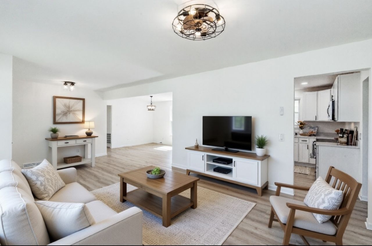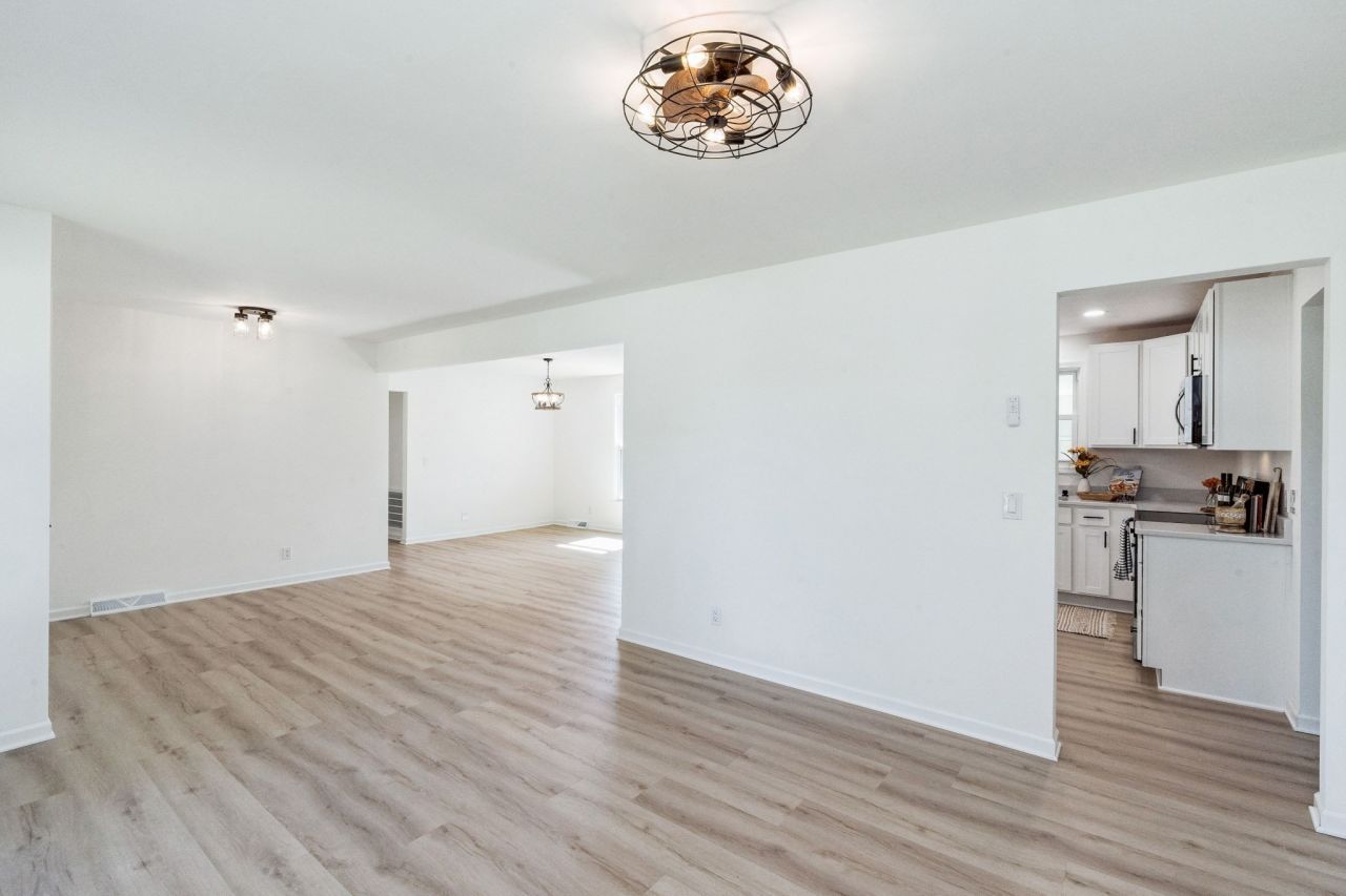 Don't miss out on this all-brick fully renovated home with great finishes and many brand- new features. The exterior includes a new gravel driveway, new front windows and landscaping. Step into an open floor plan with new LVP flooring and paint leading into the formal living room, dining room and kitchen. The kitchen is decked out with stainless steel appliances, new cabinets and new quartz countertops. The bedrooms have new carpet, fresh paint, large closets and a fully upgraded shared bath with a double vanity, ceramic tile bath/ shower combination, and LVT flooring. The master bedroom features half a bath and a large closet. Adjacent to the kitchen, you have a big bonus/or den with a laundry room, but there's more. The den continues into additional space giving ample amount of space for playrooms, office, storage, gym etc. The options are endless. This property is conveniently located in the city of Lebanon, minutes away from the interstate for commuters.