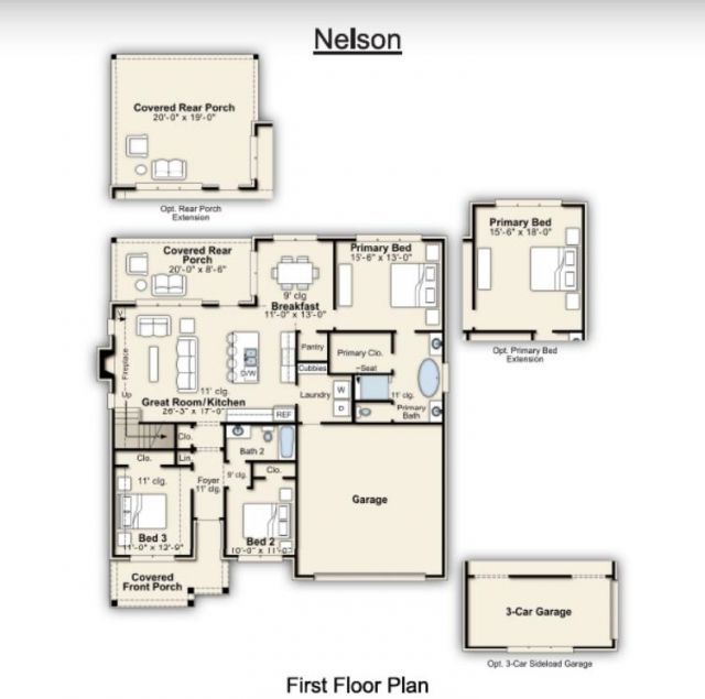 Charming 3-Bedroom Home with Upstairs Playroom & Covered Porch in Friendly Culdesac Welcome to this beautifully designed Nelson A, a 3 bedroom, 2 bath home offering comfort, functionality, and inviting living spaces. The open living area flows into a bright breakfast room, perfect for casual meals and morning coffee. The kitchen features a gas range, refrigerator, and a large pantry that provides plenty of storage. On top of all that, the home includes blinds too. Your roomy primary suite offers a relaxing retreat with a large walk-in closet, King spa shower with built-in bench, soaker tub and separate vanities for each of you! The split bedroom plan has two additional bedrooms downstairs, to provide flexible space for family, guests, or a home office. Entertaining is simple with an open upstairs playroom which is ideal for a game room, media space, or hanging out. You can also enjoy outdoor living on the 20' x 8.5' covered rear porch, perfect for down time. June Move-In!