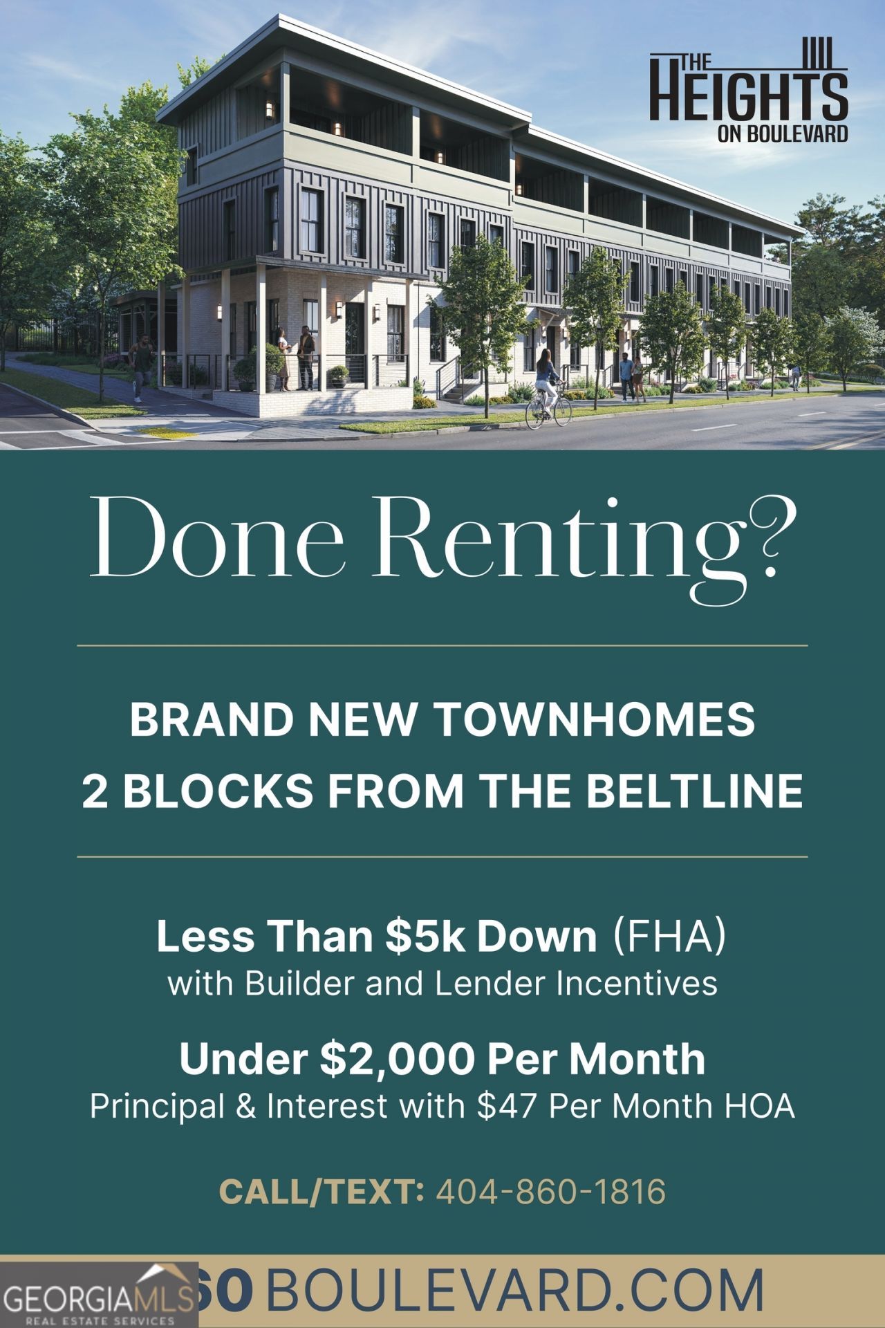 Introducing The Heights on Boulevard, a boutique community of 18 New Construction Townhomes redefining first-time homeownership in Atlanta's vibrant Boulevard Heights neighborhood. These are Fee-Simple townhomes (not condos!) that combine affordability with the freedom and privacy of full ownership, offering low HOA dues (under $50/month), no stacked neighbors, and three great levels of living space. Each residence boasts over 1,000 square feet of thoughtfully designed living, plus a Private Rooftop Terrace and Deeded Parking. The Francis style in Unit 7 is bold yet timeless, with green quartz counters, matte black cabinets, and black fixtures that ground the design in modern sophistication. Clean architectural touches like Metropolis-toned trim, handrails, and doors pair with Snowbound walls to create balance, while the bathrooms feature stacked shower tile, a large niche, and matte black detailing for a sleek, contemporary finish. Centered around a Landscaped Courtyard, with a Secure Community Bike Storage Building and a separate Amenity Area, this Pocket Neighborhood creates a welcoming sense of community while being just two blocks from the Southside BeltLine trail. Enjoy the best of Intown Living walk to BeltLine Favorites like Finca to Filter Coffee, Mellow Mushroom, Side Saddle Wine Bar, Grant Park Market, The Beacon, Little Tart Bakeshop, and Ollie's Market & Deli, with easy access to Grant Park & Zoo Atlanta, Glenwood Park, East Atlanta Village, and some of Atlanta's Best Dining including Gunshow, Talat Market, Breaker Breaker, Little Bear, Muchacho, Banshee, Argosy, and Pollo Primo. Downtown Atlanta and the Airport are just a short drive away, making this more than just a home -- it's a Lifestyle full of Charm, Community, and Unmatched Convenience in one of Atlanta's most connected Intown Neighborhoods. Our dedicated team works with you to understand your financing options and find the perfect solution, partnering with trusted lenders who specialize in first-time homebuyer programs, down payment assistance, FHA and conventional loans, and special programs for qualified buyers. Buyers choosing to work with our Preferred Lender may be eligible for incentives including a Preferred Lender Origination Credit that offsets a 1% loan origination fee, the Georgia Dream Grant of $10,000 for FHA loans, or a Preferred Lender Down Payment Grant up to $6,000 for conventional loans -- Instant Equity! With flexible financing, thoughtfully designed homes, and an unbeatable Intown Location, The Heights on Boulevard makes the dream of homeownership in Atlanta a reality. Looking to get out of the rental game and start building equity? Think you can't afford to buy a home in a great spot? GIVE US A CHANCE TO PROVE YOU CAN!