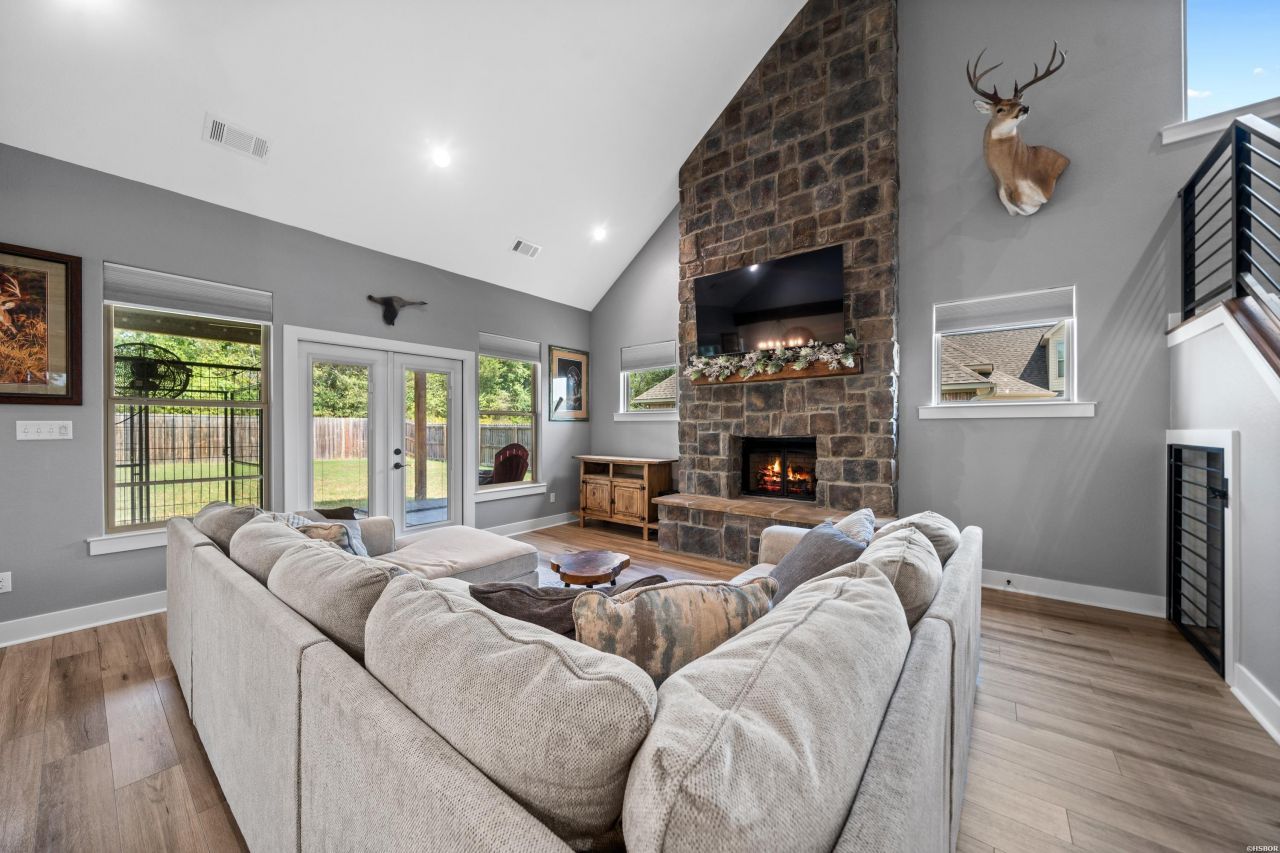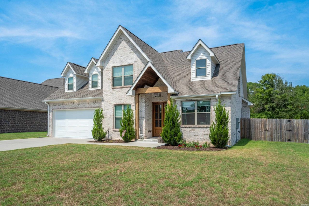 Built in 2022, this stunning two-story modern rustic home offers the perfect blend of cozy charm and upscale design. Ideally located just 5 minutes from Oaklawn, 10 minutes from Downtown Hot Springs, and only 45 minutes from Little Rock, you'll love the convenience of this safe, quiet neighborhood?with no HOA. Spanning 2,829 square feet, this beautifully crafted home features 5 bedrooms, 2.5 bathrooms, a dedicated office, and a huge den, all designed with custom finishes and thoughtful details throughout. The open-concept main level showcases rustic wood beams, an impressive all-rock gas fireplace, live-edge countertops, and abundant windows that fill the home with natural light. The vaulted master suite serves as a private retreat, complete with an oversized soaking tub, walk-in shower, and private toilet room. A spare bedroom and office are also conveniently located on the first floor. Upstairs you'll find a 500 sq. ft. bonus room, along with two additional bedrooms, including one with a spacious walk-in closet. Built with quality and care and kept in immaculate condition, this move-in-ready home offers modern comfort, rustic charm, and an unbeatable location. Schedule your showing today and experience this exceptional property for yourself.
