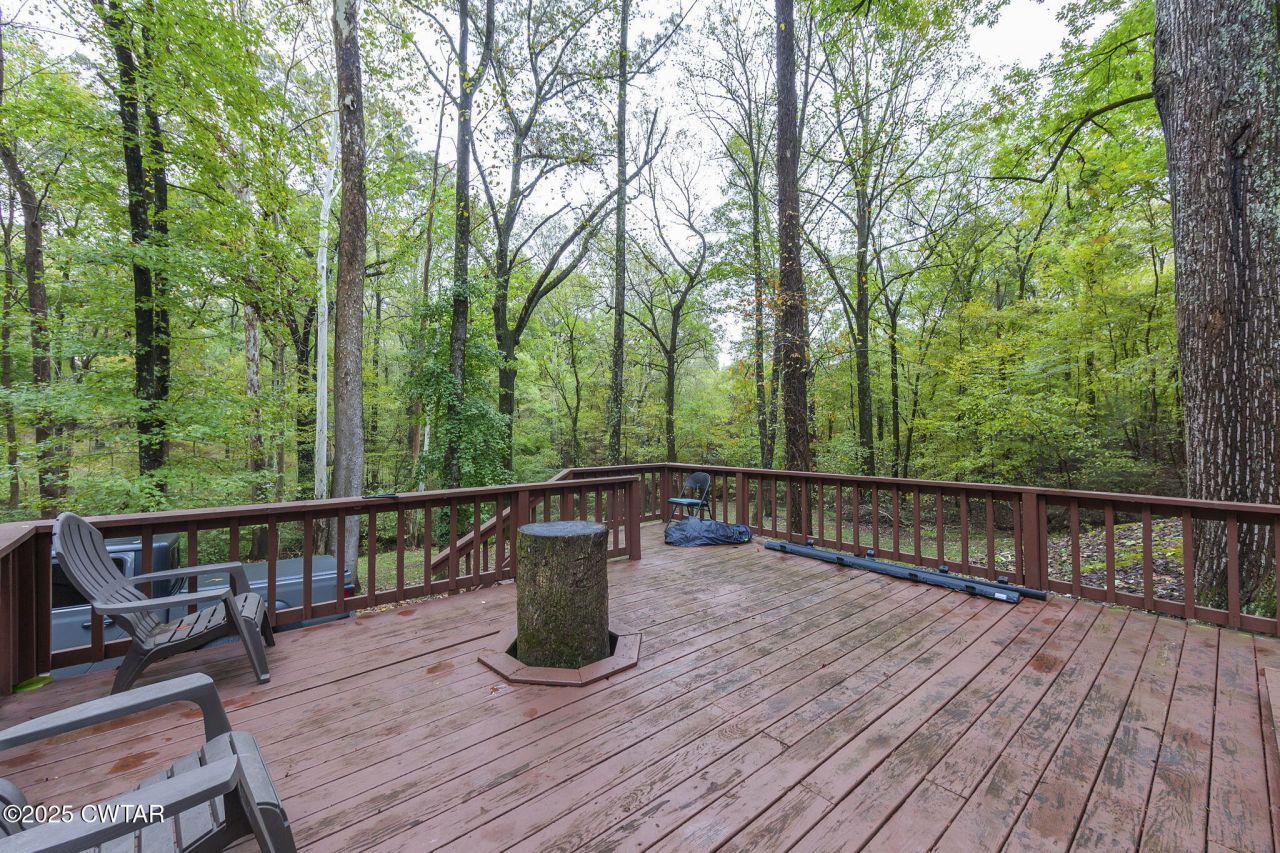 MOTIVATED seller! Nestled in a serene, wooded retreat, this mid-century contemporary gem blends timeless design with natural seclusion. Soaring beamed ceilings crown the expansive great room, complemented by custom built-in shelving and a dramatic floor-to-ceiling brick fireplace. The efficient kitchen boasts generous counter space and abundant storage for seamless functionality. Brick flooring adds rustic charm to the cozy den and elegant sun room. Retreat to the spacious primary suite for ultimate restoration. Outside, multi-tiered decks extend the living space, inviting you to unwind amid the tranquil backyard oasis.