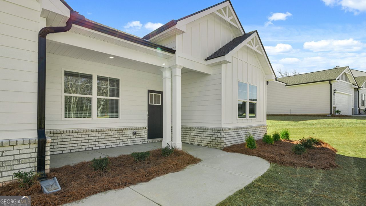 The Grover floorplan at Kingston Ranch at Lake Oconee offers 3 (or 4) bedrooms and 2 bathrooms offering 2103 sq. ft. in a thoughtfully designed single-story layout. With an open concept design, this home blends functionality and style for comfortable everyday living. The spacious kitchen features stainless steel appliances and quartz countertops, combining modern style with everyday convenience. It opens to the bright living room and cozy nook area, creating a seamless flow that's perfect for family gatherings and entertaining. A covered back porch extends your living space outdoors-ideal for morning coffee or evening relaxation. The private primary suite is located at the rear of the home, offering a peaceful retreat with an ensuite bath and generous closet space. Three secondary bedrooms are positioned at the front of the home and share a full bath, making this layout perfect for families or guests.