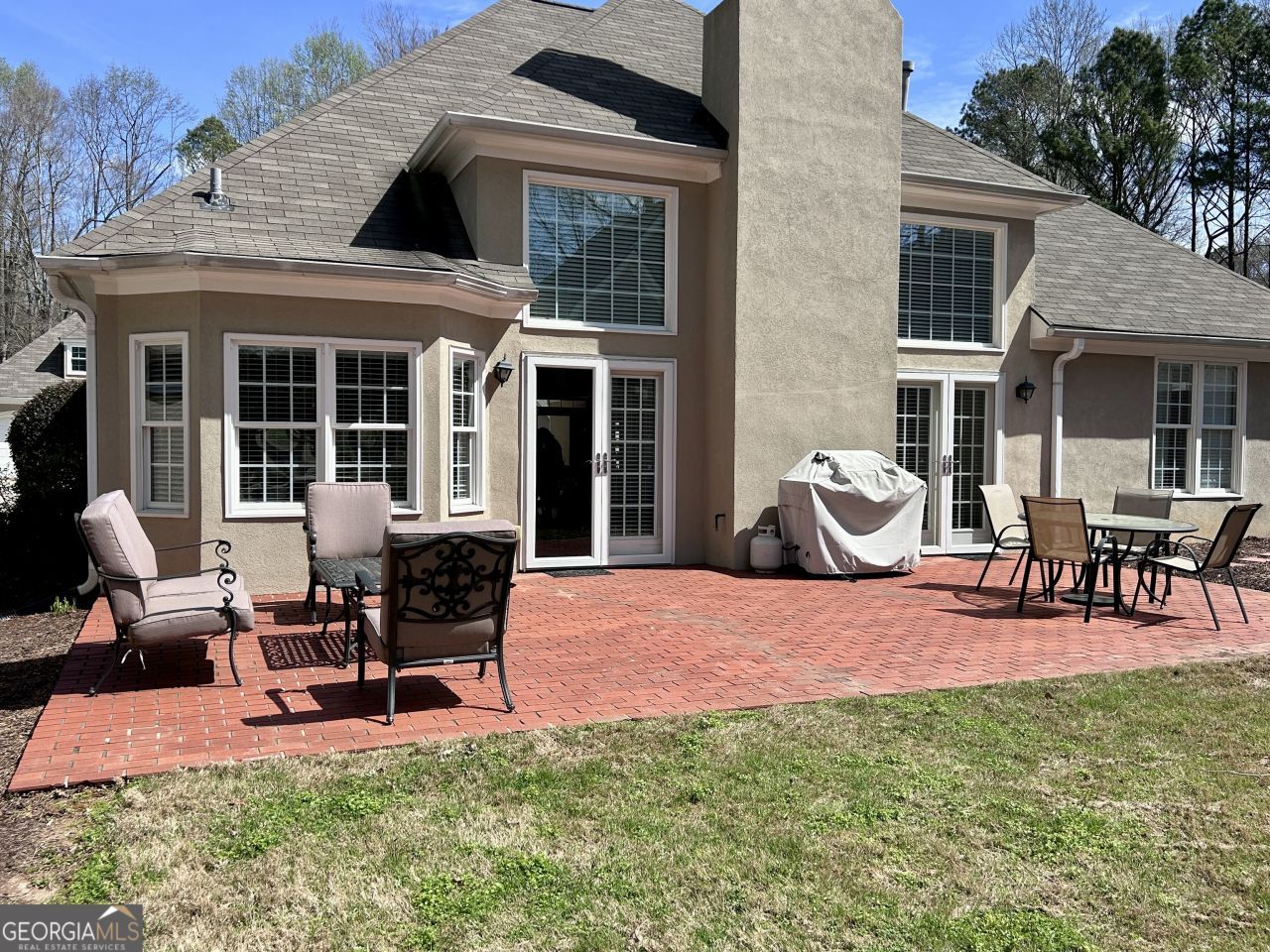 Welcome to this beautiful 4-bedroom, 2-bath home perfectly positioned on the White Oak Golf Course, offering gorgeous views and a peaceful, private setting. With its classic stucco exterior and 2-car garage, this home combines timeless curb appeal with comfortable living spaces inside and out. The main level features three bedrooms, including a spacious primary suite with a newly renovated spa-like bath highlighted by an oversized walk-in water room shower. High ceilings and abundant natural light create an open, airy feel throughout the home. The updated kitchen is both stylish and functional with granite countertops, stainless steel appliances, and a breakfast bar that opens to a spacious breakfast room. Just off the kitchen, the large great room features a cozy fireplace and elegant French doors that lead to the expansive paver patio-perfect for entertaining or simply relaxing while enjoying the private backyard and golf course views. A large formal dining room provides an ideal space for gatherings and special occasions. Upstairs, you'll find a fourth bedroom that offers flexibility for guests, a home office, or a private retreat. Step outside to the huge paver patio overlooking the private yard-an ideal spot for outdoor dining, entertaining, or enjoying quiet evenings with scenic views. Located in a private neighborhood within White Oak, residents enjoy access to a neighborhood pool and a convenient location just minutes from Newnan, shopping, dining, and everyday amenities. This home offers the perfect blend of comfort, privacy, and golf course living.