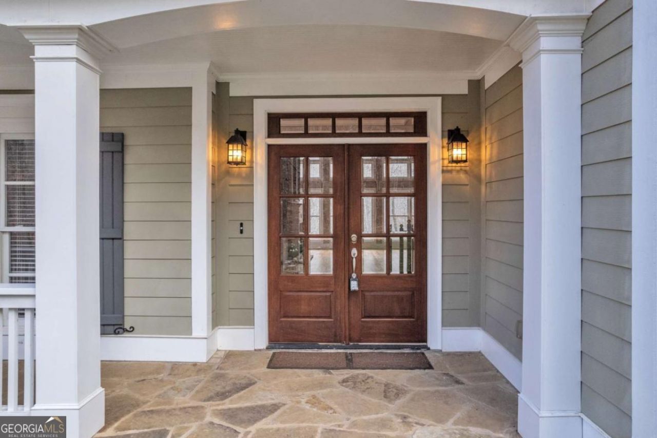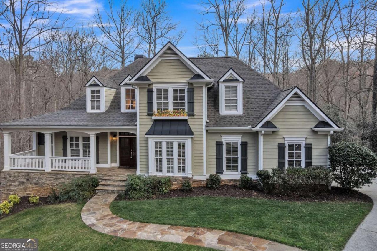 Welcome to 121 Gold Rush Run, an exquisite traditional estate tucked within the prestigious, guard-gated Achasta Golf Community in the scenic mountain town of Dahlonega, Georgia. Perfectly positioned on a private wooded homesite, this exceptional residence offers refined comfort, timeless design, and access to one of North Georgia's most coveted golf communities. This beautifully appointed five-bedroom, four-and-a-half-bath home showcases elegant craftsmanship and thoughtfully designed living spaces ideal for both everyday living and sophisticated entertaining. The interior features hardwood floors throughout the main living areas, tile in the bathrooms, newly installed carpet, and new luxury vinyl plank flooring on the terrace level. Enjoy peaceful outdoor living with an inviting covered front porch, a private deck just off the kitchen, and an expansive terrace-level deck overlooking serene woods and a flowing creek-perfect for relaxing or entertaining while surrounded by nature. The main level features a luxurious primary suite offering a tranquil retreat, complete with a spa-inspired bath featuring a deep soaking tub and an oversized tiled shower. The heart of the home is highlighted by custom cabinetry, granite countertops, and welcoming gathering spaces that blend warmth with classic architectural style. Upstairs, two spacious bedrooms provide comfortable accommodations for family or guests. The finished terrace level expands the home's entertaining potential with a custom hardwood bar, generous living area, and two additional guest rooms-ideal for hosting visitors or creating flexible living spaces. Residents of Achasta Golf Community enjoy an unparalleled lifestyle centered around the renowned Jack Nicklaus Signature Golf Course at Achasta. Community amenities include an elegant clubhouse, restaurant, swimming and tennis facilities, pickleball courts, scenic hiking trails, and opportunities for fishing and kayaking along the beautiful Chestatee River. Just minutes away lies the charming historic square of Dahlonega, celebrated for its vibrant festivals, boutique shopping, and exceptional dining. Recognized by Southern Living as the #1 Small Town in Georgia for 2023, Dahlonega offers a unique blend of mountain charm and modern convenience, including nearby award-winning wineries, outdoor adventures, and the Northeast Georgia Medical Center. Discover a lifestyle defined by privacy, natural beauty, and resort-style amenities in one of North Georgia's most distinguished communities.