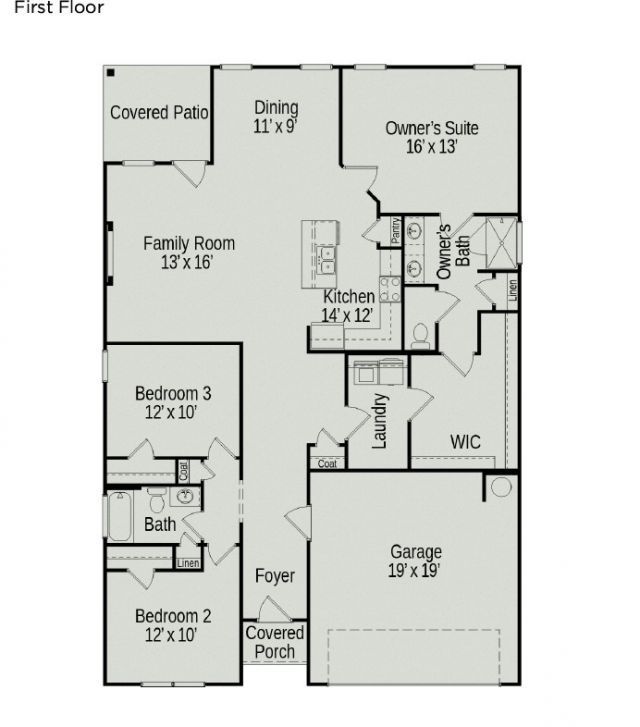 The Langford at The Groves at Chapel Hill by Smith Douglas Homes. Flexible one-level living is available in the Langford, punctuated by a light-filled dining area with views of the backyard and access to a covered patio. An adjacent open kitchen with central island overlooks the spacious family room. The owner's suite, tucked away at the back of the home, feels like a private sanctuary with its spa-like bath and sizeable walk-in closet. A conveniently located and extra-large laundry room enhances everyday living and offers optional convenience right into the laundry. If needed, a second floor with bedroom 4 and bath ensuite may be added. To be built home. Photos are representative. Contact listing agent for details.
