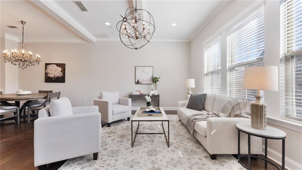 Welcome to your amazing new End-Unit townhome with the largest floor plan in the community in the highly desired 321 Vaughan community. This Downtown Alpharetta location is zoned for Top-Rated Alpharetta Elementary, Hopewell Middle and Cambridge High School! This spacious 4-bedroom, 3.5-bath end unit townhome is over 2,640 square feet and offers an exceptional open layout with 10' ceilings on the main level, 9' ceilings on the other levels, 3 entertainment areas, a coffered ceiling in the Great Room, upgraded crown molding, new designer lighting, and hardwood floors throughout the entire home, including all bedrooms. The elegant main level features a bright front sitting room, a dining area with a stylish Butler's pantry with glass-front cabinetry. The gourmet kitchen is complete with 42 white cabinetry, large entertaining island, upgraded granite countertops, subway tile backsplash, KitchenAid Stainless Steel appliances, gas cooktop, vent hood to the exterior and walk-in pantry. Enjoy a cozy keeping room with a stone gas fireplace, plus a screened-in porch overlooking peaceful, private views, your perfect morning coffee spot or reading nook. A tucked-away half bath offers a new vanity, mirror, and lighting. Upstairs, three generous bedrooms all boast hardwood floors. The convenient laundry room sits just outside the luxurious owner's suite on the top floor. The owner's suite features a tray ceiling and a fully updated spa-style bath with new mirrors, granite countertops, a walk-in shower, and a soaking tub. Secondary bedrooms enjoy privacy and share a well-appointed full bath. The ground level offers incredible flexibility, ideal for a home office with additional living space plus a guest bedroom with multiple windows. The ground floor is complete with a full bathroom, walk-in shower, mudroom area, and oversized storage closet. The extra-long driveway easily fits 4 cars adding another benefit to the property. The perfect home for entertaining inside and out, there are over 20 speaker pre-wires if music is what you enjoy. This townhome lives like a single family home with all of the amazing windows on 3- sides, privacy on the side and rear, plus the long driveway. Here you will enjoy no maintenance of the exterior of your new home or the yard. The Downtown Alpharetta area is the hub of local culture and activity that delivers the luxury of the modern South where you can shop, eat, watch a movie, enjoy a festival or hear a concert. This upscale destination brings together Southern charm with everything you have been looking for! Located nearby Ameris Bank Amphitheatre, this unique setting for music lovers is 45 acres and seats 12,000 people between the under roof and open lawn seating. Less than 1 mile from Downtown Alpharetta and near the Alpha Loop, Avalon, and endless dining, shopping, and entertainment you will love the convenient location and lifestyle with low maintenance. With over 250 shops and 200 restaurants within a 5-mile radius, there are always things to do in Alpharetta! Experience the exceptional lifestyle you will enjoy at 126 Brindle Lane today!