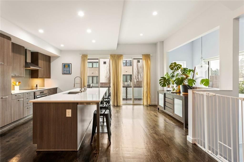 Morning coffee on the porch, weekend strolls through Candler Park, an easy walk to Little Five Points for dinner or drinks, this townhome makes it effortless to enjoy the moments that make this neighborhood so special. Step inside to freshly painted walls and newly refinished hardwood floors that set a warm, inviting tone. The kitchen is the heart of the home, with a long island that seats four and flows seamlessly into the dining and living areas. Custom cabinetry, quartz countertops, stainless steel appliances, and thoughtfully placed lighting make this a space where cooking, entertaining, and everyday life feel effortless. Gather friends for dinner, spread out with a good book, or step outside to the porch for fresh air?it's all built for comfort and connection. Upstairs, the oversized primary suite is a quiet retreat, while a generous secondary en-suite bedroom ensures comfort for family or guests. On the ground level, a third bedroom with a flexible room provides space that adapts to your lifestyle, perfect for guests, a home office, a workout area, or a creative corner, alongside a two-car garage for convenience. Outside, the backyard and deeded side garden are fence-ready and back up to Mulberry Fields, the community garden, and land trust, preserving green space and connecting you to nature every day. High ceilings, open layout, and careful finishes throughout the home create a light, airy feel that keeps the focus on living well and enjoying the neighborhood. Step outside and you're just minutes from Fox Bros BBQ, Steady Studio Pilates, Sean's, Candler Park, and all the neighborhood spots that make this area so vibrant. Zoned for Mary Lin Elementary, this home puts you at the center of a community that's easy to love.