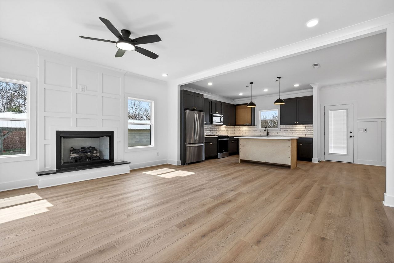 New construction 4-bedroom home with thoughtful upgrades that set it apart from typical spec houses. Features include a gas fireplace in the living area, all kitchen appliances conveying, and a spacious layout designed for comfortable living. The primary suite includes a tile shower, large closet, accent wall, and barn door adding a custom feel. Two-car garage and located on nearly an acre, providing a huge backyard with room to enjoy. One-year builder warranty included.