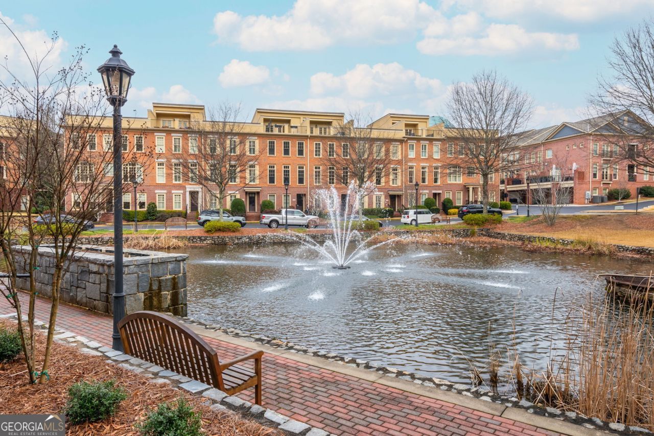Luxury Meets Location the prestigious One River Place community! This exquisite 3-bedroom, 3 1/2 bath full-brick townhome harmoniously blends the conveniences of urban living with the serenity of nature. An elegant formal living room upon entry, the home transitions seamlessly into an open-concept design, featuring a stunning kitchen with a large island, stainless-steel appliances, and granite countertops. The charming living room, enhanced by a cozy fireplace, built-ins, and coffered ceilings, creates an inviting atmosphere for both relaxation and entertainment. Step outside to the maintenance-free composite decking area surrounded by nature, a private wooded view and the soothing sounds of a nearby stream. The upper floor is adorned with hardwood floors, leading to an expansive primary suite. The suite's bathroom is a haven of relaxation, featuring a double vanity, a large soaking tub, a separate shower, and a walk-in closet. The convenient laundry room serves the second-level bedrooms. A secondary bedroom includes an ensuite bath with custom cabinetry and granite counters. The terrace level offers a casual mudroom entry from the 2-car garage and an additional ensuite bedroom with a full bath. The home is designed with an elevator shaft, offering the potential to add an elevator servicing all three levels, or alternatively, it provides substantial walk-in closet space on each level. One River Place is a gated community spanning 33 acres, characterized by lush green spaces, a serene pond, and a plethora of amenities. Residents enjoy two saltwater pools (one heated), a two-story clubhouse with meeting rooms, a gym, a spa room, and a pavilion with a fire pit and grills. The community also boasts a dog park, private access to the Chattahoochee River, walking trails, and is in close proximity to Cochran Shoals and Powers Island. Additional features include 24/7 security, an on-site concierge, and easy access to The Battery @ Truist Park, Cumberland Mall, Vinings Jubilee, and popular dining options like Ray's on the River and Heirloom Market BBQ. This townhome is more than just a residence; it's a lifestyle offering both luxury and the tranquility of nature, right at your doorstep.
