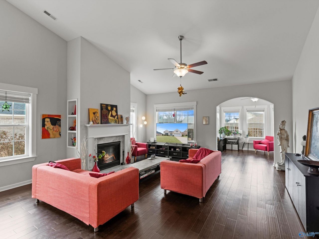 Beautiful brick home in desirable Chadwick Pointe featuring a spacious open layout with vaulted ceilings, fireplace, sunroom, and more. The isolated primary suite offers a garden tub and separate shower for a relaxing retreat. Enjoy outdoor living on the extended patio and a well-designed floor plan perfect for everyday living and entertaining. This home plan features an additional 4th bedroom with en-suite bath upstairs. Conveniently located near Clift Farms shopping and dining, Redstone Arsenal, Research Park, and MidCity with easy access to Hwy 72 and I-565.