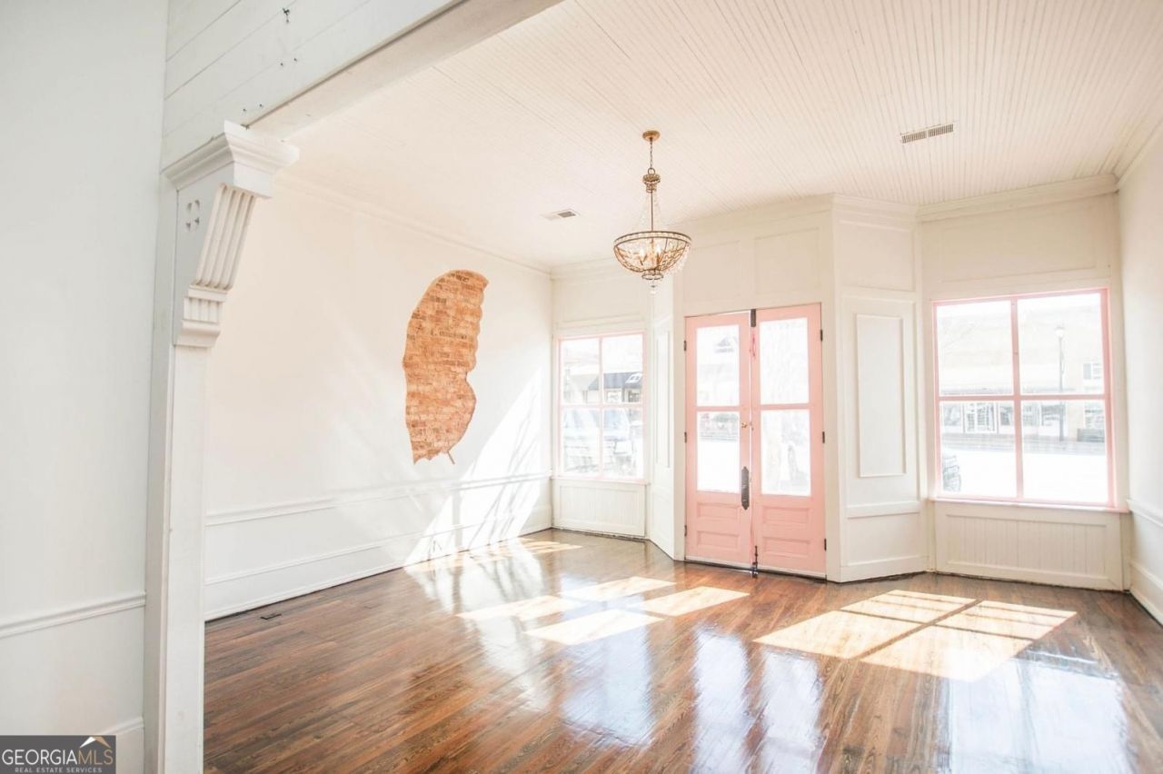 Step into timeless character with this beautifully preserved 1910 commercial storefront in the heart of downtown Social Circle. Featuring large display windows that flood the space with natural light, this property offers the perfect setting for retail, office, or boutique space. Inside, you'll find original hardwood floors, exposed brick walls, and tile flooring that highlight the building's historic charm while providing durability for everyday use. The layout includes two bathrooms, a kitchen area/break space, and flexible open areas ideal for displays, workstations, private office , or customer seating. With its blend of historic character and functional updates, this unique space is ready to bring your business vision to life. Just a few business idea of many, boutique, yoga/pilates studio, salon, bridal shop, business office space, ice cream shop, restaurant, attorneys office etc.