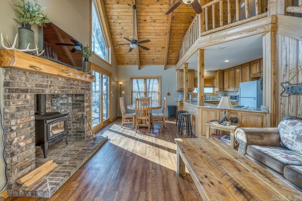 Walnut View Cabin is a proven income-producing property set on 4 scenic acres near Ponca and Deer, Arkansas, just minutes from the Buffalo National River, Glory Hole and Paradise Falls trailheads, and 10 miles from Boxley Valley. Perched on a knoll overlooking Walnut Valley and the Ozark National Forest, it offers privacy, easy access at the junction of AR-16 and AR-21, and ample parking. The log-sided cabin features a large wraparound deck, towering brick fireplace, and outdoor firepit with incredible star-filled views. Inside, the 2-bedroom, 2-bath layout includes vaulted ceilings, native pine accents, expansive windows, and an open kitchen with custom oak cabinets and granite countertops. The main level offers a bedroom, bath, and laundry, while the loft includes additional living space, a second bedroom, bath, and storage. Ideal as a turnkey rental, private retreat, or full-time residence in one of Arkansas??? premier outdoor destinations.
