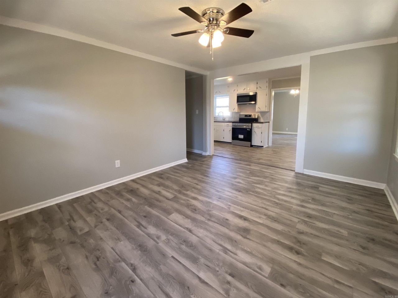 Remodeled 3 bedroom, 1 bath home with carport and shop. New windows, flooring, and appliances, including fridge. Shop with overhead door. A gas water heater, and gas central heat. Ceiling fans in all bedrooms. This home has vinyl siding, with architectural shingles.