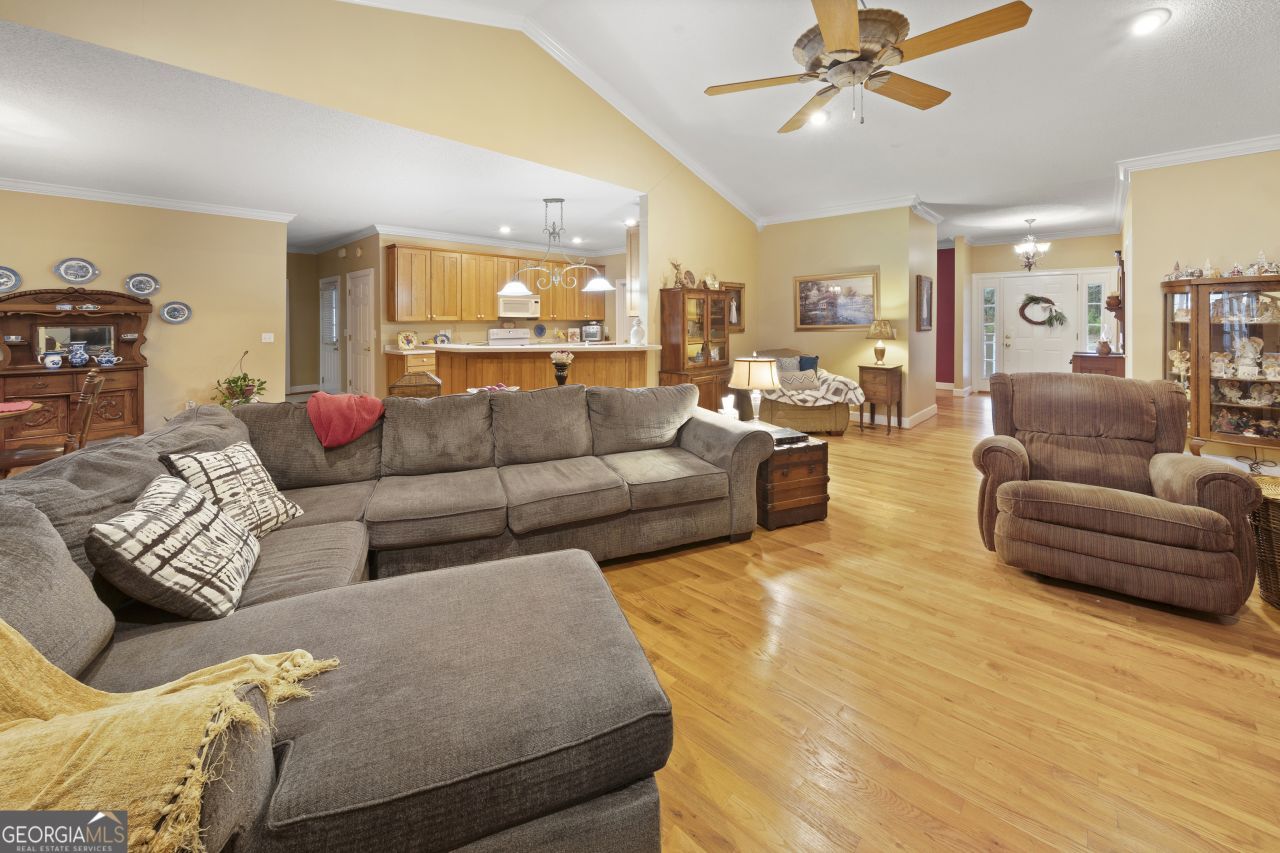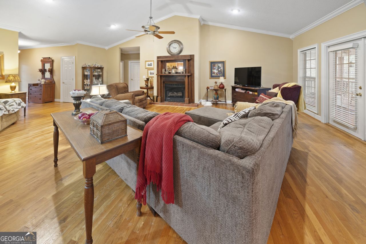 Welcome to this beautiful and spacious home situated on 5+/- acres, offering privacy, road frontage, and endless possibilities-just minutes from Lake Wedowee. The main level features three bedrooms and two full baths with an open floor plan perfect for entertaining. Enjoy a cozy living area with fireplace and , and a well-appointed kitchen, dining room, and breakfast room, all accented by real hardwood floors. Master suite is located on the main level and includes a private master bath. A fully equipped laundry room offers convenient access to the covered deck and the two-car garage below. Downstairs, you'll find a fully finished basement complete with an additional kitchen, bedroom, bathroom, and a large open area-ideal for family gatherings, recreation, or multi-generational living. The 5 acres features road frontage and ample space for farming, hunting, and recreation. All this and more !!!!