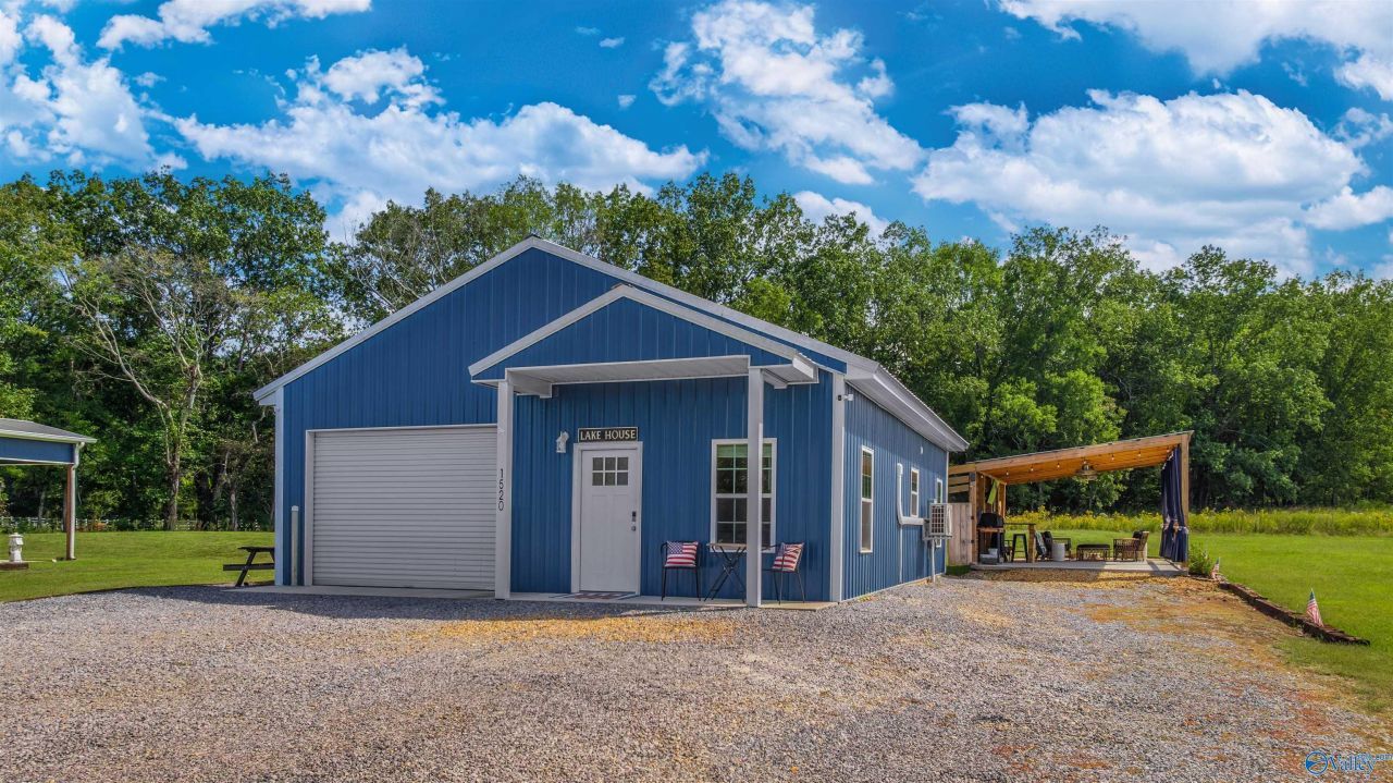 Why not own a place near Lake Guntersville & Tennessee River? This comfortable, fully furnished dwelling has much to offer inside & out. Low maintenance exterior w/ a covered porch, 16x24 covered patio AND a gravel fire pit area. Over 1200 sqft total. Currently 650 sqft is finished for living space. The remaining 550 sqft is enclosed garage for your watercraft. Inside you'll feel the warmth of a cozy mountain cabin with wood walls and vaulted ceiling. Open living and eat-in kitchen w/plenty of cabinets. Primary bedroom w/ large closet and laundry nook. Spacious bath w/ oversized shower and good storage. Currently in rental program. 3 boat ramps within 10 mile drive.