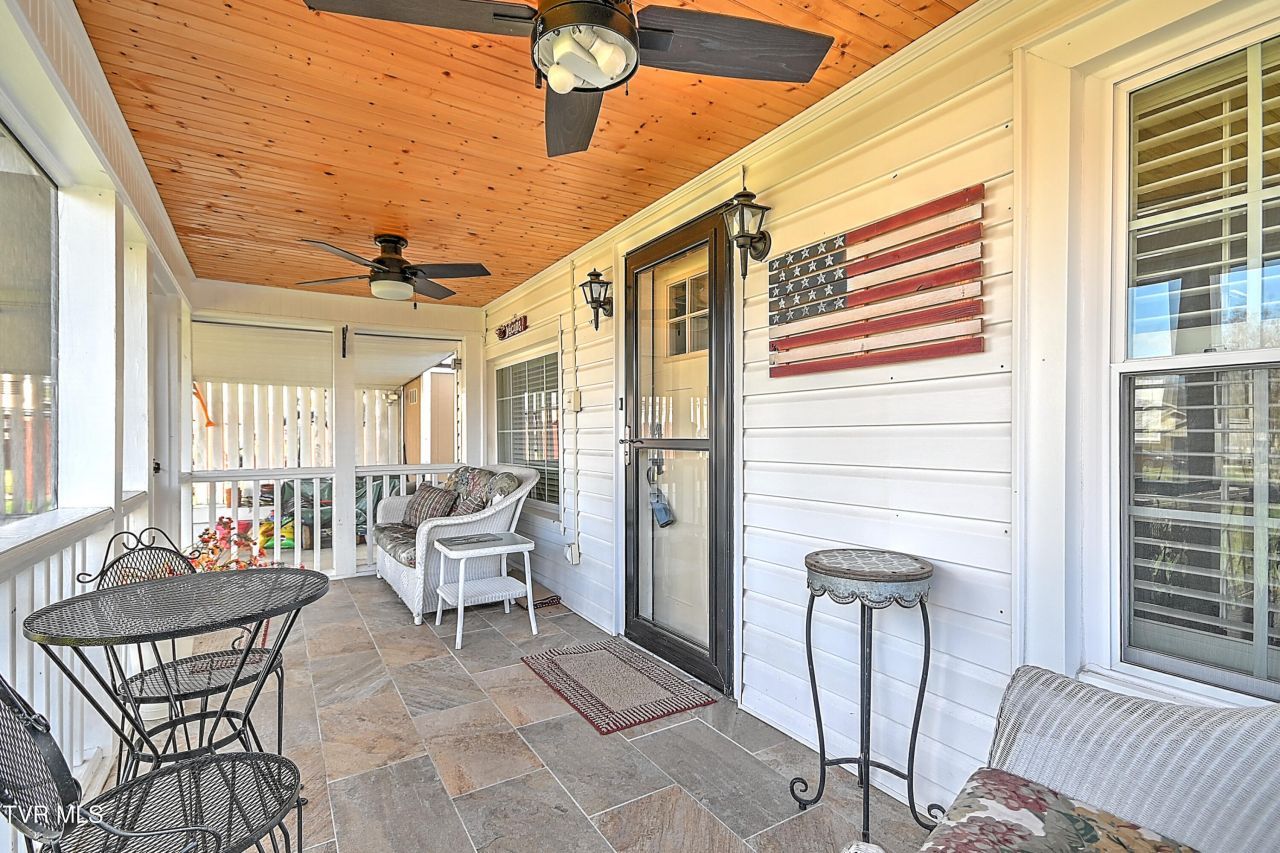 Charming, Cozy, but Spacious... Two Story with addition sited within walking distance of schools for the families on the go. Features level lot, wonderful screened in front porch with wood ceiling. Upon entry the LR is to the right featuring hardwood floors, and built in shelving. LR partially open to remodeled kitchen with crisp white cabinets, quartz countertops, newer backsplash, stainless steel appliances (conveys as is, works fine). The cabinetry extends under window with floor cabinetry which would make a great little sitting area, then extends to matching desk. Semi open kitchen wraps around to sunlit dining room. Perfect for a farm style or family size table and chairs. with access to rear covered patio for evening relaxation. The main level master bedroom is located to the left of entry, offering closet addition and newly remodeled full bath with walk in shower and laundry has been relocated to main level. Wood stairs to upper level which host 2 large bedrooms, good closet space, full updated and spacious hall bath. More features include crown molding, HW floors, plantation blinds, partially fenced level lot (some courtesy of the neighbors, carport, paved driveway, metal roof, heat pump and more... Walk in storage from exterior into basement, additional built in storage on rear patio and nice storage bldg. in the front. 3 storage buildings total.This property sets back a good distance from the road adding to the curb appeal. Beautiful landscaping, lots of storage and more... a must see to add to your list...but hurry it may not last long.