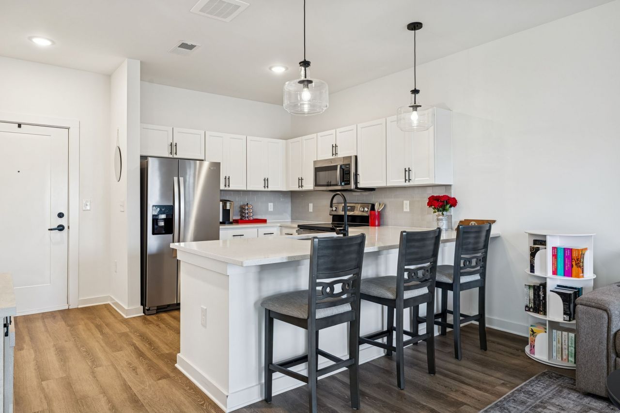 Situated in the heart of Nashville's thriving Donelson City Side neighborhood, this modern condo offers a seamless blend of city accessibility, resort-style amenities, and attractive investment potential just minutes from Downtown Nashville. The light-filled interior showcases a contemporary eat-in kitchen with quartz countertops, stainless-steel appliances, subway tile accents, and sleek finishes designed for both everyday comfort and entertaining. The spacious primary bedroom features a walk in shower and an oversized walk-in closet, while in-unit laundry and ample storage enhance the ease of condo living. Step onto your private covered patio, an inviting outdoor escape perfect for morning coffee or relaxed summer evenings. Residents of Flats at Ontario enjoy a full suite of amenities including a stylish clubhouse, state-of-the-art fitness center, sparkling pool, fenced dog park, elevator access, and ample parking, making this property highly desirable for buyers searching Nashville luxury condos, condos with a pool near downtown, and Donelson real estate living. Whether you are looking for a low-maintenance residence or a smart addition to your real estate portfolio, this condo delivers lifestyle, location, and long-term value in one of Nashville's most in-demand areas. Schedule your private showing and discover the appeal of modern Donelson living.