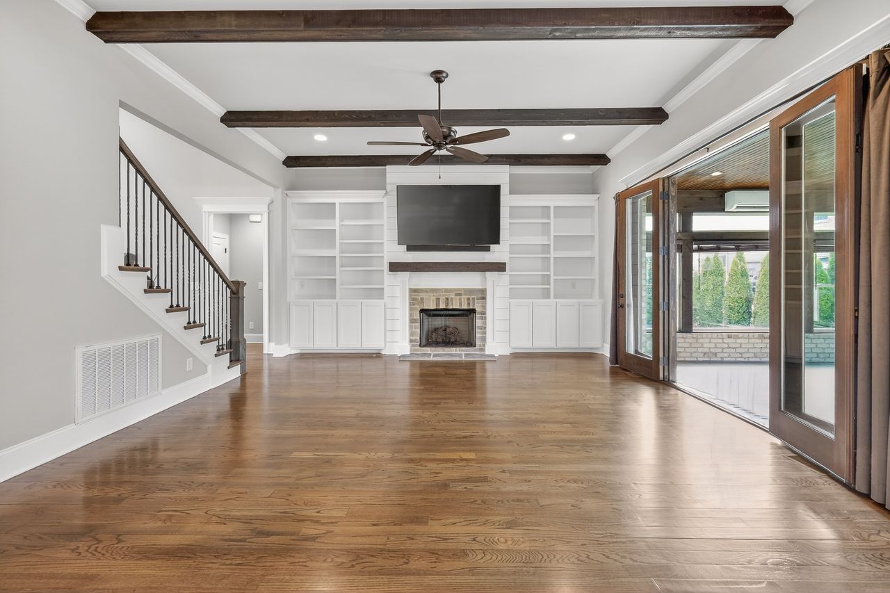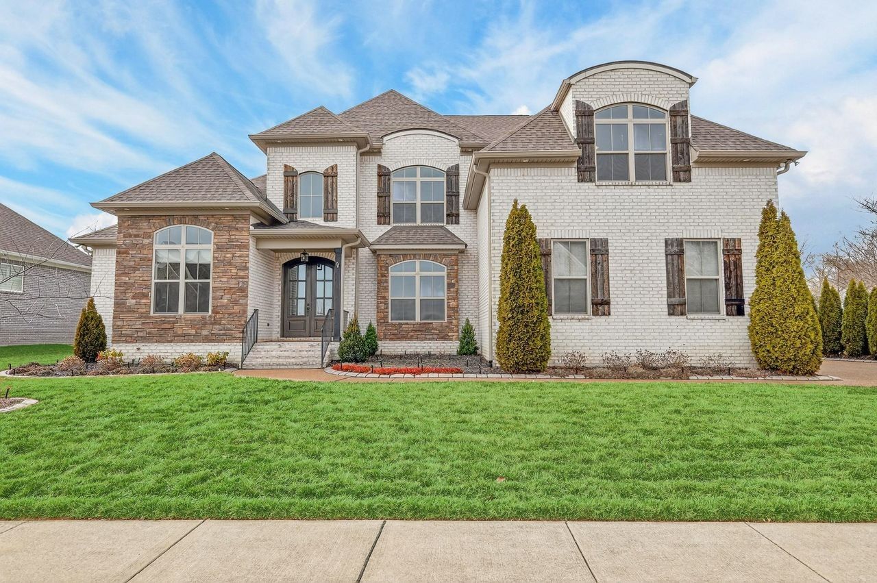 LUXURY MEETS AFFORDABILITY ---Buyers receive $25,000 in concessions with acceptable offer to help lower the interest rate making a more affordable monthly payment or to help pay for Closing costs. This executive-style home in Thompsons Station is in the highly coveted Cherry Grove with easy access to I-65/840 and zoned for award-winning Williamson County schools. This newly painted home features quality crafted construction with coffered ceilings, board & batten, shiplap, taller crown & baseboard moldings, 3/4 sand & finish hardwoods, primary suite on main level, home office, spacious room sizes, bonus room with wet bar, extra flex space for an exercise room/finished storage, an expansive kitchen with double ovens/quartz counters/island with storage/extra-large dedicated pantry room/undercabinet lighting, and large built-in mudroom with sink/cabinetry/laundry. The spacious great room with custom built-ins opens onto a fully enclosed year-round sunroom with a gas fireplace and private view of the backyard for even more living space and entertaining. The backyard offers an extended patio area for entertaining, a gas line for your grill hook-up, privacy from neighbors, and an irrigation system. The 3-car garage features an epoxy coating, EV charging plug, built-in shelving units, tankless water heater/instant hot water & T.V.