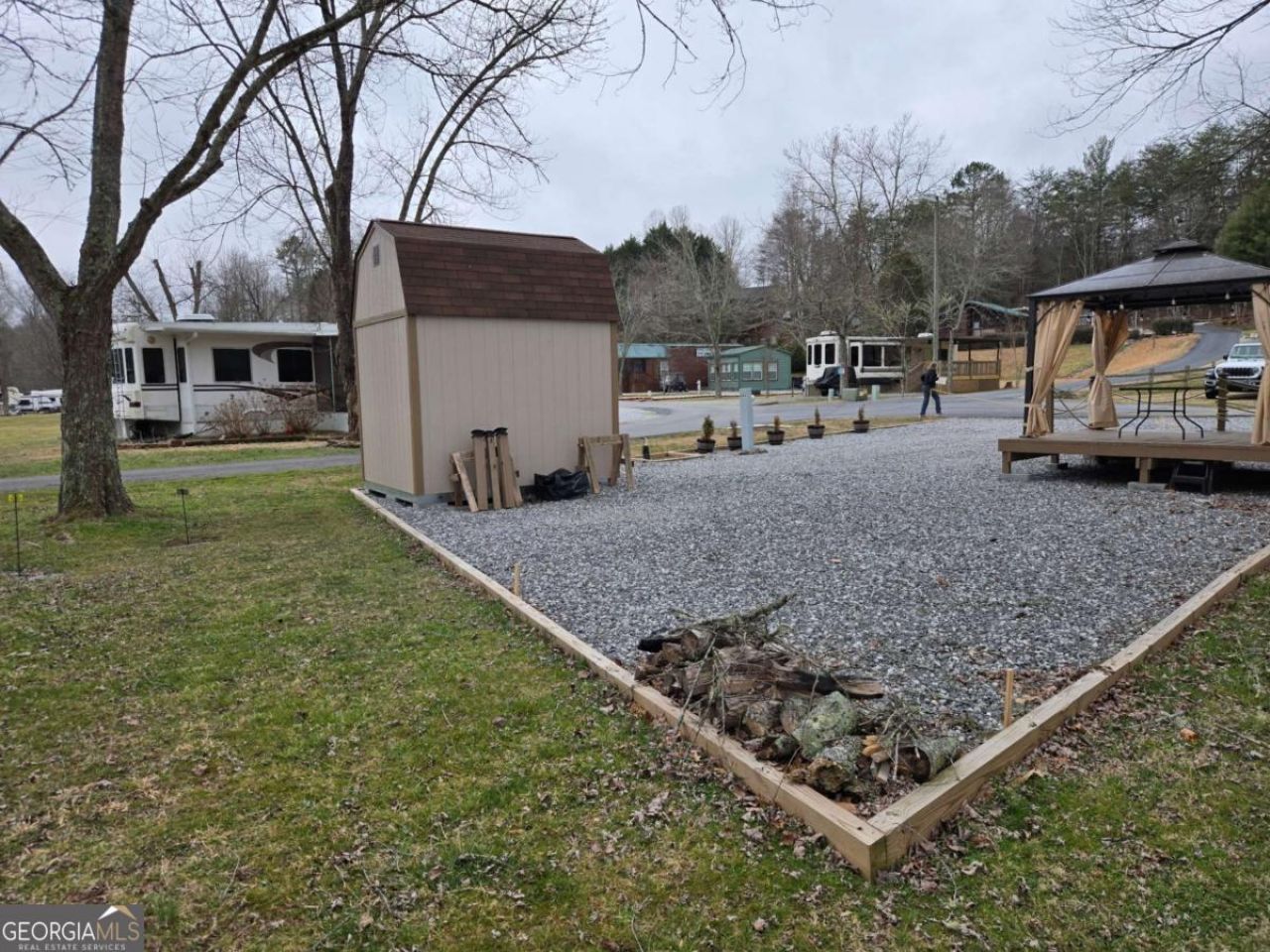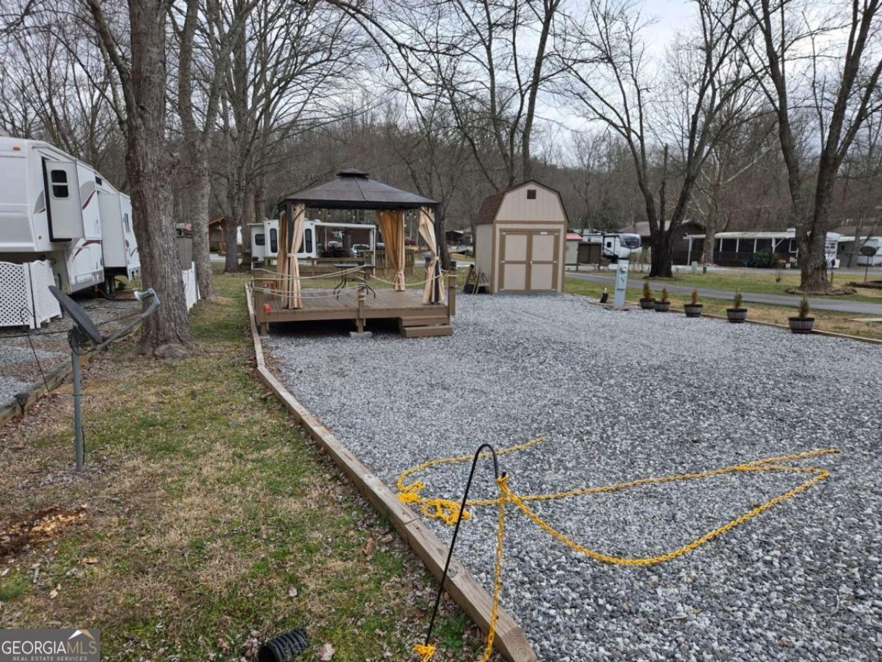 ***MOTIVATED SELLER! BRING US AN OFFER!***Spacious RV lot available in a desirable RV park! This level lot features fresh gravel, a raised deck with a charming gazebo perfect for outdoor relaxation and a brand new shed for extra storage. There's room for your RV, golf cart and parking for your vehicles. Equipped with septic hook-up and power already on site, this lot is ready for your RV or tiny home. Don't miss the opportunity enjoy comfortable and convenient living in this well-maintained space while enjoying the North GA mountains and the amenities.
