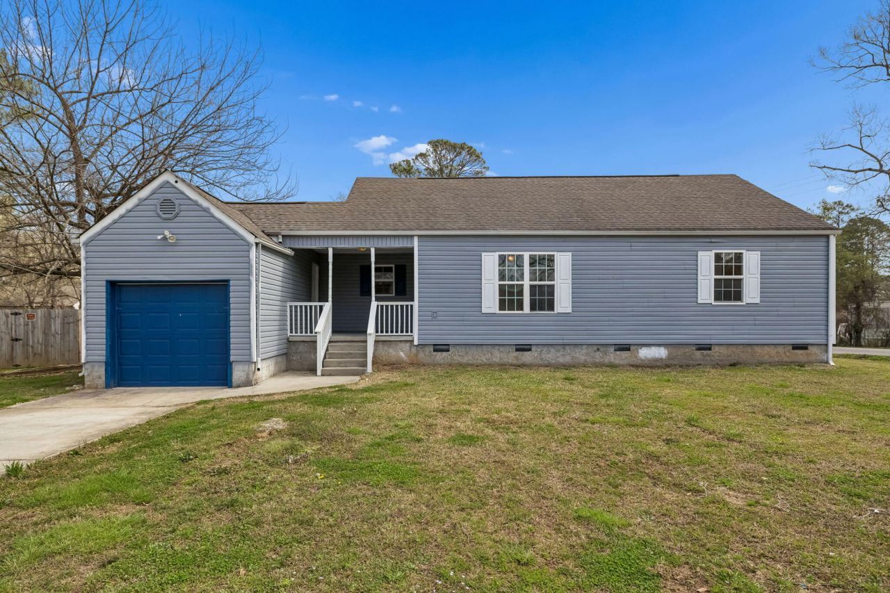 Home with a great floor plan in a convenient location with quick access to the interstate. This one-level property features 3 bedrooms, one and a half bathrooms, a generous living room, and a dedicated dining room, offering comfortable and functional living space. The interior is move-in ready and includes a garage for added parking or storage.Situated on a level lot with usable outdoor space and a covered front porch. Very close to shopping, dining, and recreation, including Bass Pro Shops and Camp Jordan Park. Easy access to I-75 makes commuting and travel throughout the area simple.