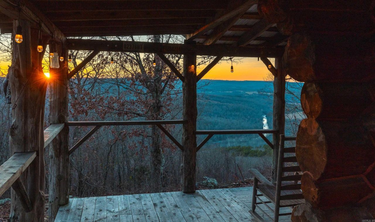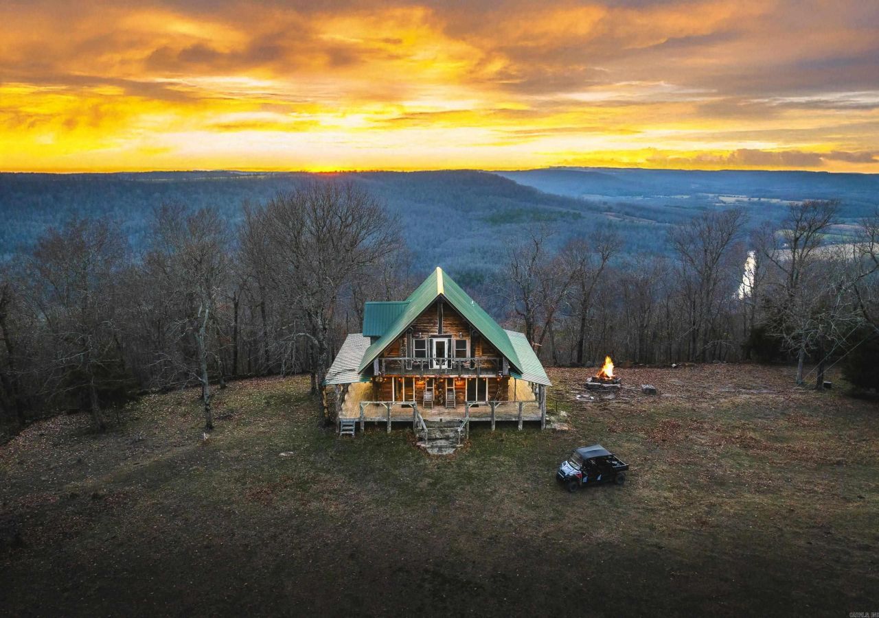 Stunning 167-acre property featuring a gorgeous log cabin with Douglas fir logs and red cedar interior walls and floors, 1 bed, 2 bath. Huge stone staircase, a stone fire pit, and a full wrap-around porch with breathtaking sunrise views across the 30-acre mountain top pasture known as Henderson Point. This pasture is right at a 1/2 mile long and was formerly a private airstrip. The back porch offers world-class sunset views over the middle fork of the Little Red River and the remainder of the property. Two stocked ponds with bass and bluegill, hunting opportunities for deer, turkey, and bear. Appliances stay. Some furniture and decor is slightly different than whatâ??s pictured. 20-foot tall bluff. Plenty of room to build your dream home, plane hangar, or shop with the same stunning sunset views. Cabin is on rural water. Fiber internet is available.