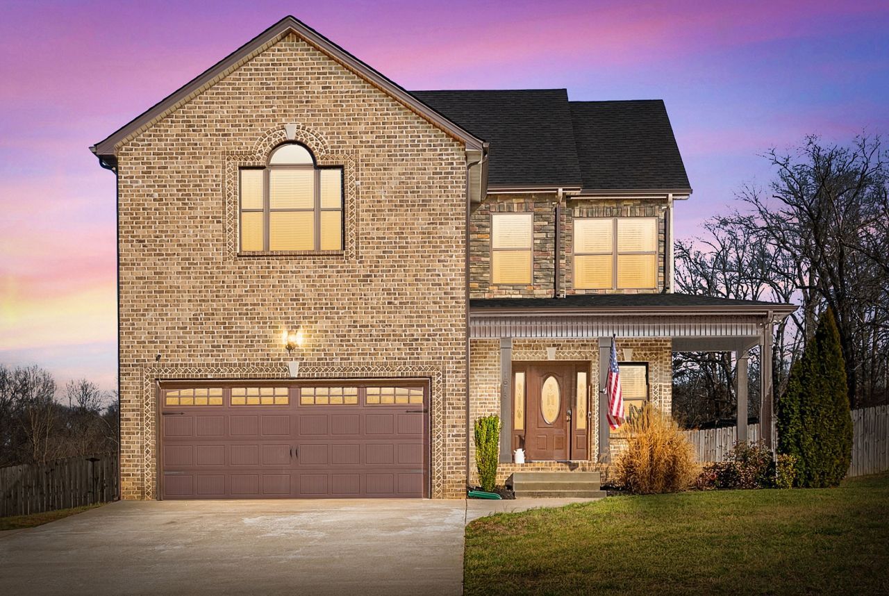 Beautiful home with plenty of space (1.5 acres) and no backyard neighbors! Home is located in a great location that is a short drive to Fort Campbell and Clarksville! Hardwood floors welcome you into the entryway and flow through the main floor. The spacious living room features a decorative fireplace mantel and large windows that bring in lots of natural light. The country kitchen boasts an island, granite countertops, large deep sink, backsplash, an eat-in space, and a pantry. The main level also features an extra-large laundry/utility room and a half bath. Upstairs, the oversized primary bedroom features a double tray ceiling, a walk-in closet and an accent wall. The spa-like primary bathroom has it all! A jetted bathtub, a separate tiled shower and a double vanity. Two large bedrooms, both with decorative tray ceilings, and a full bathroom complete the main wing of the second floor. Across the landing of the stairs is a giant bonus room with two large walk-in closets that provide plenty of storage and a convenient half bathroom. The bonus room could technically be used as a giant fourth bedroom since the septic system is rated for a four-bedroom home. The 22'x20' garage provides even more storage area with its size, tall ceilings, and built-in shelving.Relax on the large wrap around front porch or out on the covered back porch. Grill and entertain on the giant concrete patio that has a sunshade installed as well as a fire pit area. A large portion of the back yard is fully fenced in for added privacy. The fence features a back gate used to access the remainder of the acreage. Behind the gate and towards the middle of the property you will find a playset for children and a gravel storage area. Driveway extension was installed to help make turning around easy. New HVAC unit for upstairs installed in June (2025).***Seller has an accepted offer with a 48-hour Buyer's First Right of Refusal contingency in place due to Buyer having a home sale contingency.***