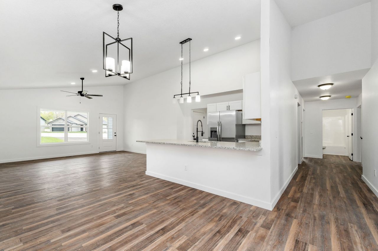 Discover Your Dream Home in a New Neighborhood! This stunning new construction home features 3 spacious bedrooms, 2 full bathrooms, and an open kitchen and living room, perfect for entertaining guests. Enjoy elegant granite countertops, stylish luxury vinyl flooring, and vaulted ceilings that create a spacious feel throughout. With ample storage options, a covered back deck for outdoor relaxation, sodded yard, and a convenient 2-car garage, situated on a peaceful cul-de-sac lot, this home is designed for comfort and convenience. Sky View Meadows offers the perfect blend of privacy and accessibility, conveniently located near shopping, dining, and medical services. Explore additional homes and floor plans to find the ideal fit for your lifestyle. Don't miss out on this fantastic opportunity!