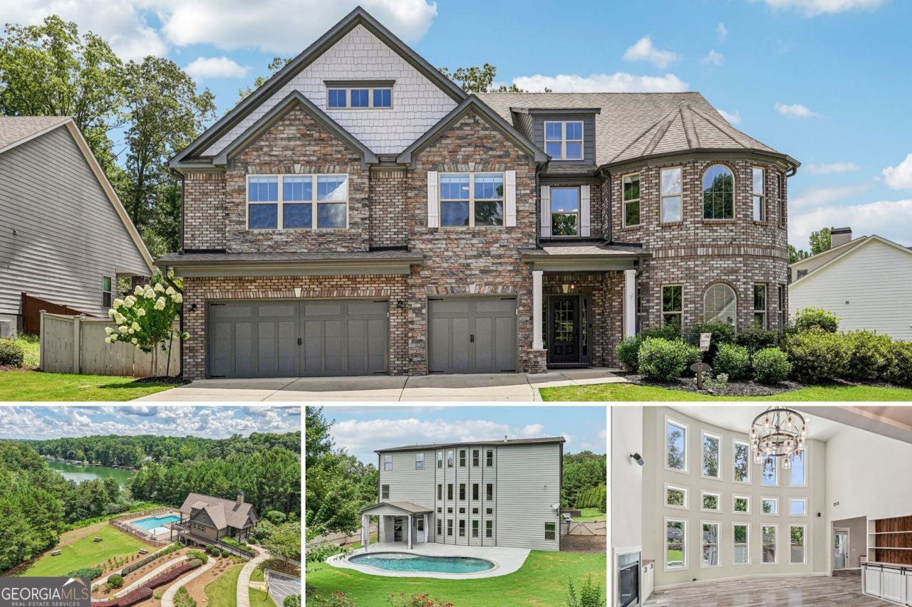 Welcome to 17 Lake Sydney Drive, a sanctuary of elegance nestled within the tranquil and gated community of Dawson Pointe, right on the serene shores of Lake Lanier. This stunning 3-story home is the epitome of sophistication and privacy, designed for those who relish both luxurious living and entertainment. As you step through the grand 2-story foyer, you're greeted by the luminous great room where a double-height wall of glass frames views of the lush outdoors, seamlessly blending the interior with the enchanting surroundings. The heart of the home, a chef's kitchen, is adorned with custom cabinetry, a farmhouse sink, double ovens, and an expansive island perfect for gatherings. The master suite on the main level offers serenity with its spa-inspired bathroom and direct access to a backyard oasis complete with a covered porch, a newly installed pebble-tech heated pool, and a fenced yard for ultimate privacy. Upstairs, the luxurious primary suite offers an oversized seating area, a spa bathroom, and expansive closet space. Additional large bedrooms with private baths, a loft, and a second family room provide versatility and comfort, creating an ideal setting for multi-generational living. Enjoy the community's exclusive amenities, including a pool, clubhouse, tennis courts, and a community dock, marrying leisure with convenience. Just minutes from I-400, North Georgia Premium Outlet Mall, and local dining, this prime location offers unparalleled accessibility without sacrificing tranquility. Disclaimer: All information deemed reliable but not guaranteed and should be independently verified. Photos & lot lines may be virtually staged to assist buyers in visualizing the property's potential. Contact the listing agent for more information or to schedule a private showing.