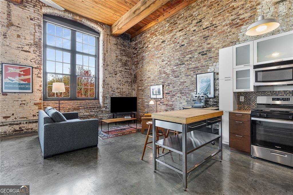 Experience true loft living in this airy, open 1-bedroom, 1-bath home featuring exposed brick walls, soaring ceilings, and oversized windows that flood the space with natural light. The generous layout includes a large closet and flexible living area perfect for both relaxing and entertaining. Located within the iconic Stacks Lofts-a beautifully restored 1880s cotton mill-this residence blends industrial character with modern comfort. Enjoy a full suite of community amenities including a refreshing community pool, an expansive rooftop patio with stunning city views, and an onsite gym included. The community's unique mix of history, contemporary design, and updated amenities creates a vibrant, urban oasis. The community is gated and just steps from Cabbagetown, the BeltLine, and Inman Park. You're moments from local cafes, restaurants, and MARTA - the perfect balance of convenience, charm, and city living.