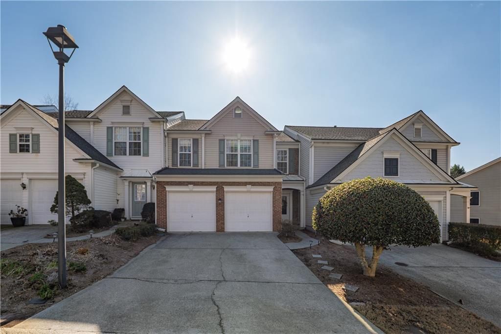 Enjoy low-maintenance living in this beautifully updated three-bedroom, two-and-a-half-bath townhome located in the highly desirable Woodstock community of The Regency at the Village of Weatherstone. Filled with charm, warmth, and character, this home features exceptional upgrades throughout. The kitchen is thoughtfully designed with new stainless steel appliances, granite countertops, a tiled backsplash, and additional cabinetry offering ample storage. It opens seamlessly to a bright breakfast area and a cozy fireside family room, creating an inviting space for everyday living and entertaining. Step outside to a charming patio with brick pavers, extending your outdoor entertaining area. The main-level powder room was updated in 2019 and features a stylish shiplap accent wall, leathered granite countertop, and designer sink. Upstairs, the primary suite offers vaulted ceilings, a wall of windows for abundant natural light, and a striking shiplap accent wall. The ensuite bathroom includes a double vanity, separate tiled shower with frameless shower door, soaking tub, and access to a spacious walk-in closet. Two generously sized secondary bedrooms provide excellent closet space. Recent improvements include a new roof with architectural shingles and gutters installed in 2019. Two car garage includes custom built heavy duty shelving for extra storage space. Community amenities include a swimming pool, playground, and tennis courts, while the HOA maintains the exterior of the home and lawn for easy living. Ideally located with convenient access to vibrant Downtown Woodstock, as well as Alpharetta and Roswell, this home is close to a variety of restaurants, shopping, and community events, with easy access to I-75, I-575, and GA-400?all while benefiting from Cherokee County taxes.