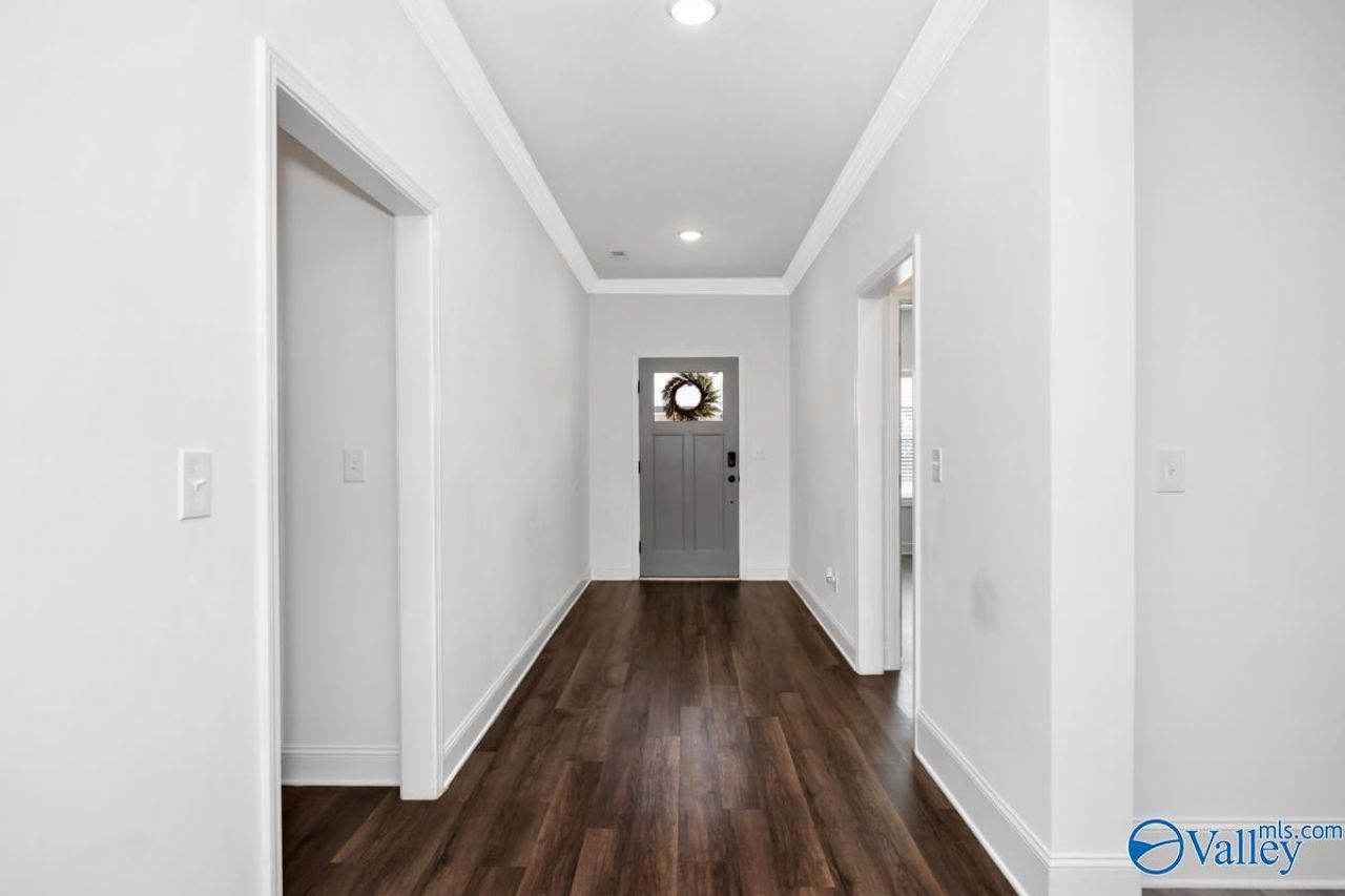 Beautifully designed home with an open-concept layout on a spacious, fenced lot. LVP flooring and modern fixtures highlight the main living areas. The bright kitchen features a large island, walk-in pantry, and plenty of natural light. The inviting living room is perfect for relaxing or entertaining. The primary suite offers a spa-inspired ensuite with a frameless glass shower and soaking tub. Ample storage throughout. Enjoy a covered back porch overlooking a flat backyard, plus access to a community pool and clubhouse. Conveniently located approx. 20 minutes from downtown Huntsville. USDA eligible.
